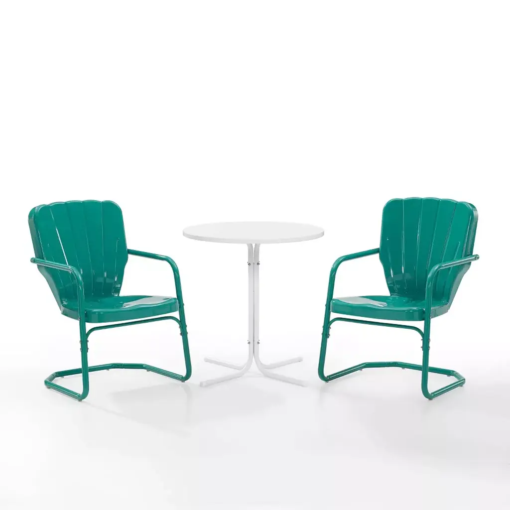 Ridgeland 3Pc Outdoor Bistro Set With Table & 2 Chairs - Turquoise Gloss - Crosley