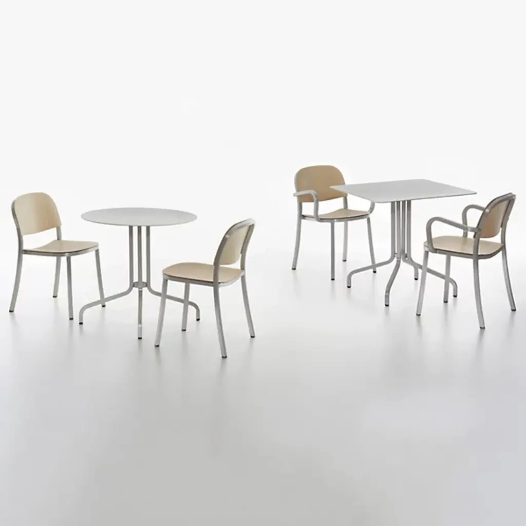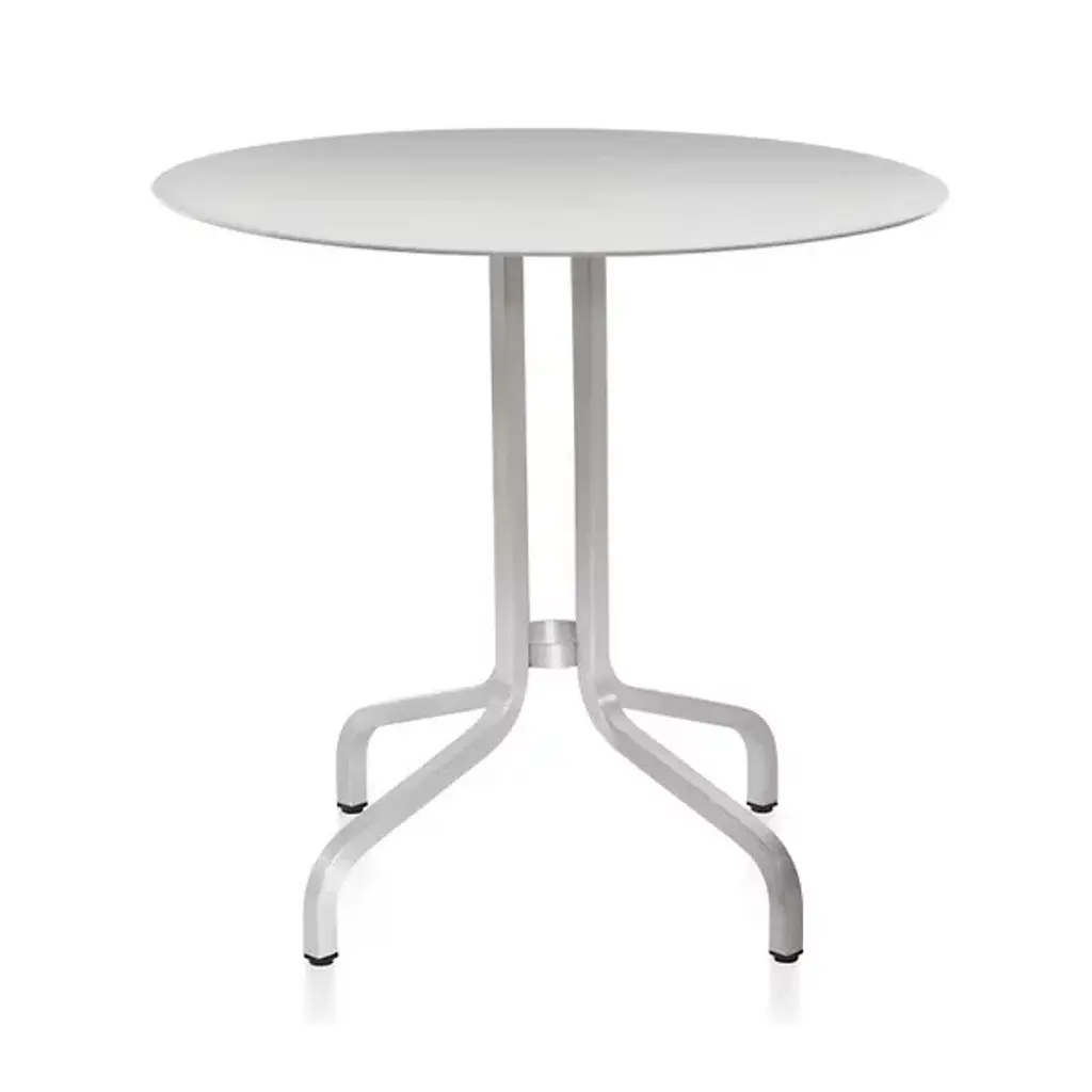 Get comfortable with the elegantly casual 1 Inch Café Table Round by Emeco. A Jasper Morrison design handmade from recycled aluminum, this product mixes flat sides with elegant curves as four metal legs stand upward to support the round tabletop. At 28.4” in height, it’s comfortably-sized for the living room or patio alike, and big enough for morning talks or breakfasts with coffee and a newspaper or a good book.