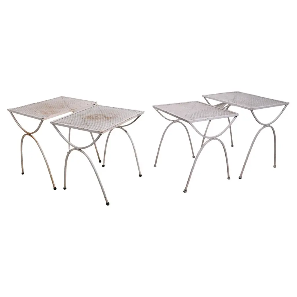 2 Outdoor Victorian-style (20th Century) painted wire design 4 legged cafe tables (PRICED EACH)