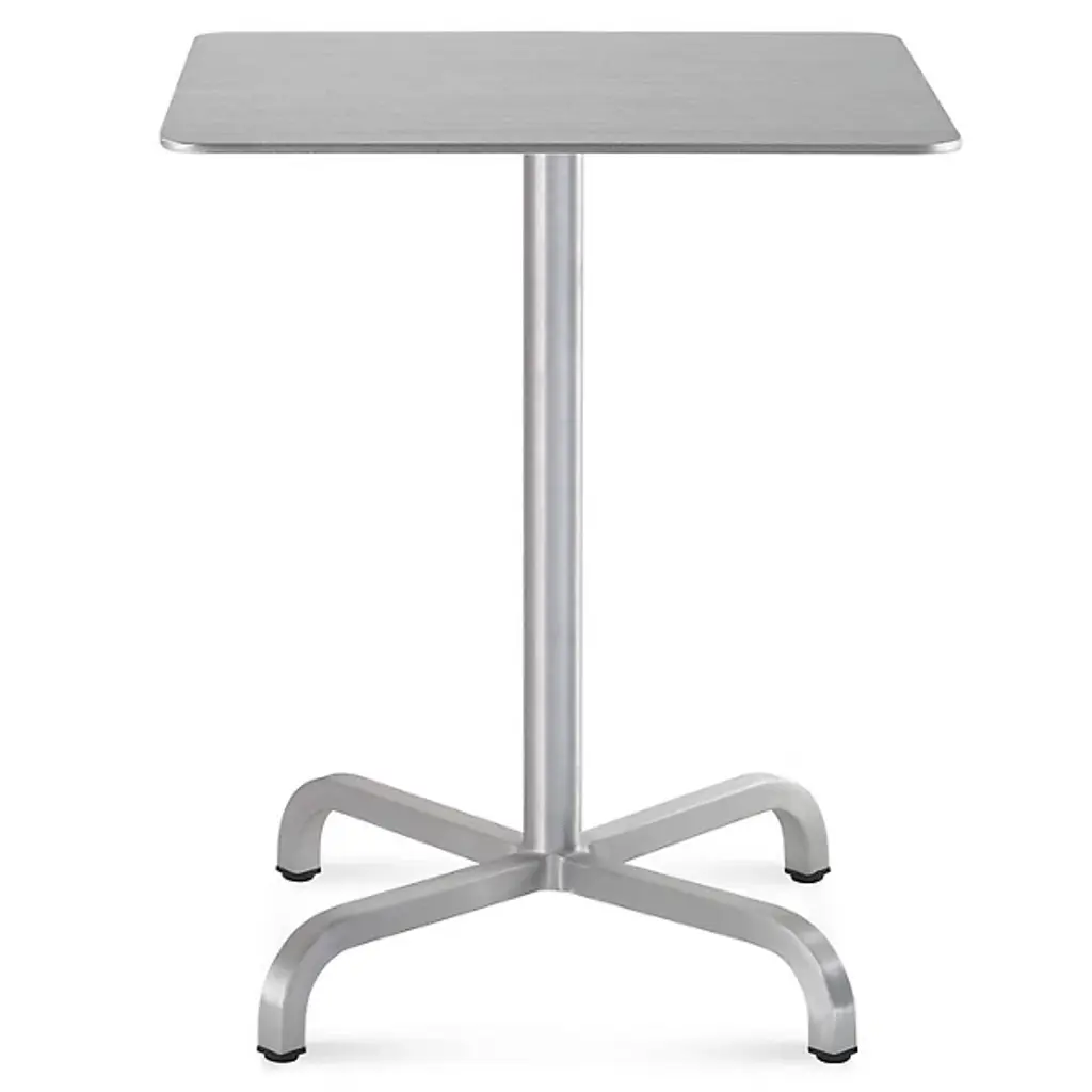 Modernize your living space with the 20-06 Square Café Table by Emeco. Designed in collaboration with Norman Foster, its sturdy aluminum frame and smooth surface offer easy cleaning maintenance and plenty of space to enjoy food and drinks with others. Built lightweight for effortless transportation to different areas of your home, this café table will instantly enhance the form and function of an eat-in kitchen or smaller-sized dining room.