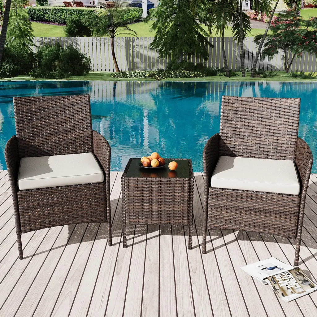 3 Pieces Outdoor Patio Furniture Sets, Rattan Patio Table And Chairs Set Black And Beige - Beige