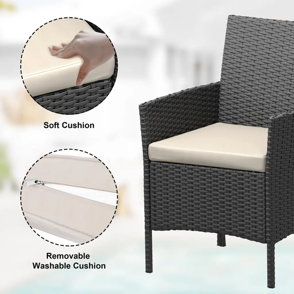 3 Pieces Outdoor Patio Furniture Sets, Rattan Patio Table And Chairs Set With Cushion And Coffee Table, Outdoor Furniture Bistro Set, Black And Beige
