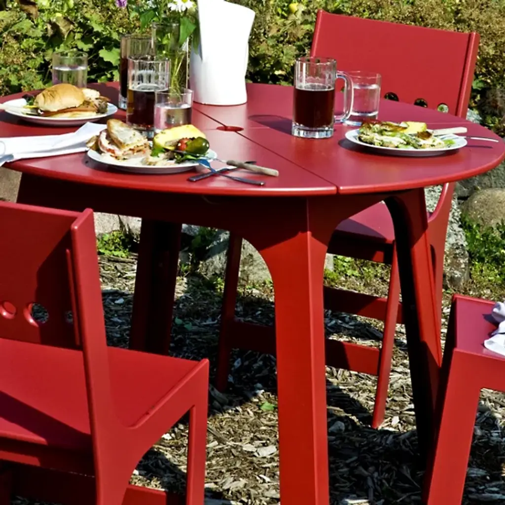 Round up three of your favorite friends and gather around the Loll Designs Alfresco Outdoor Round Bistro Table. Great for a late morning brunch or evening meal outdoors, the Alfresco Round Table endures sun, wind and rain and features a wide base that provides good leg room and ensures stability. It's even got a hole in the middle for an umbrella. Let the festivities begin!