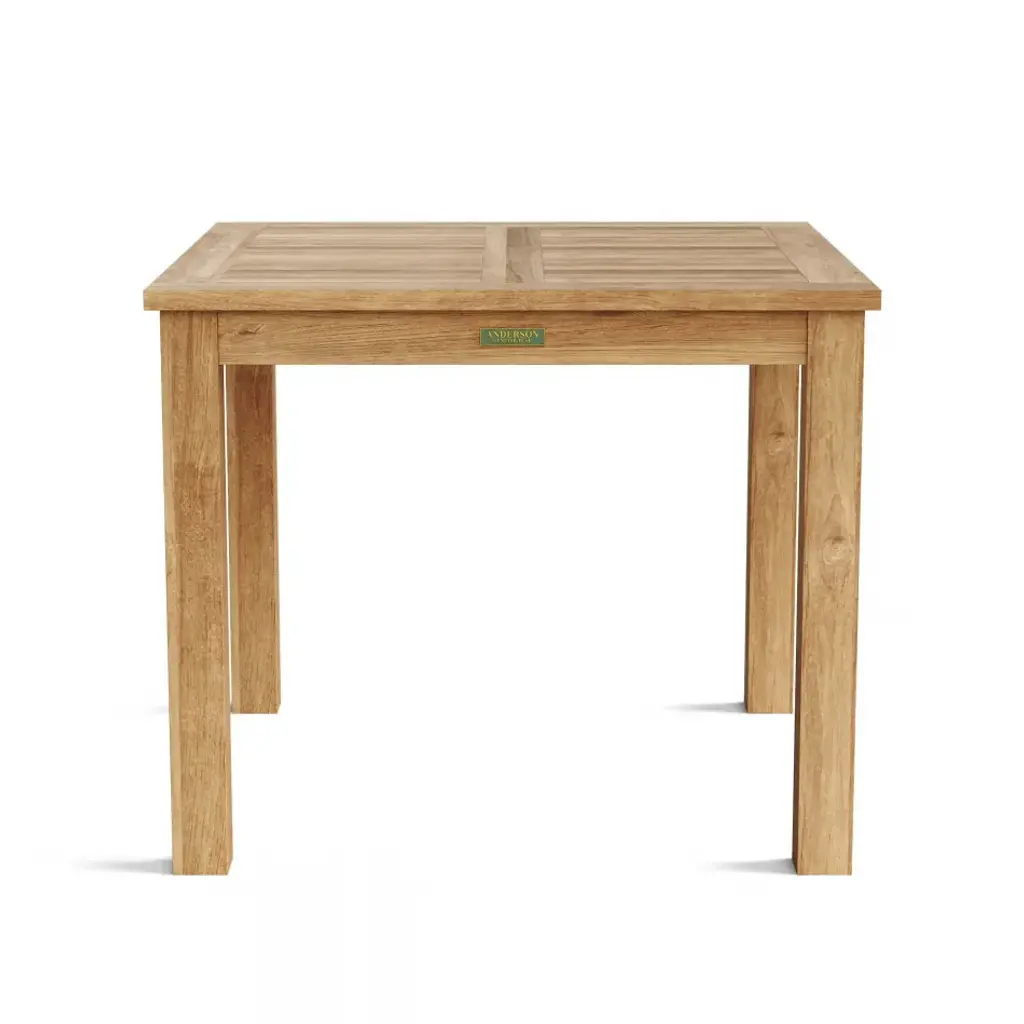 Enjoy an outdoor lunch or coffee in your patio, garden, or yard with the Bahama 35” Square Bistro Table. Sturdy and spacious for medium spaces, It is also perfect for boating, restaurants, and café where space is limited or where chairs are only required occasionally. Made from genuine teak wood sanded smooth to the touch, it is the perfect material for weathering the outdoors through rain, hail, or shine. Seats up to four people.