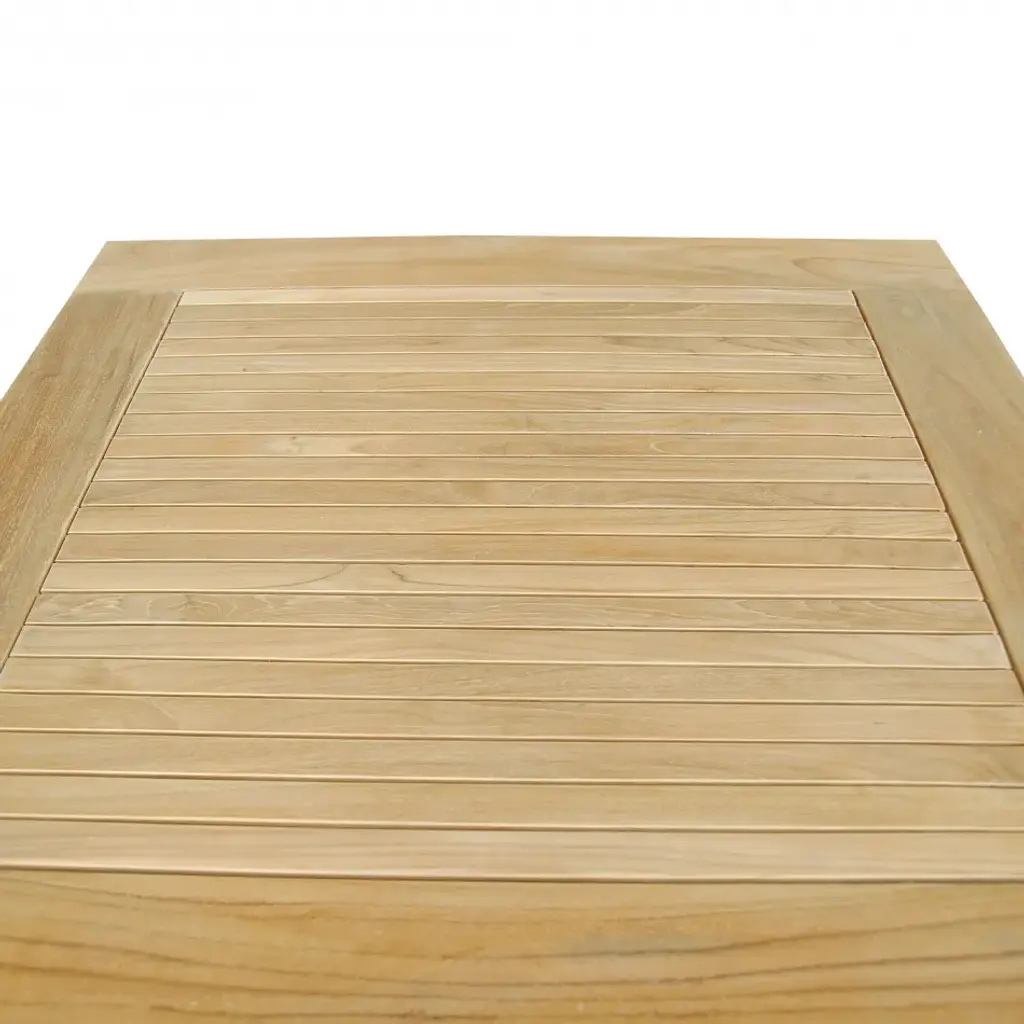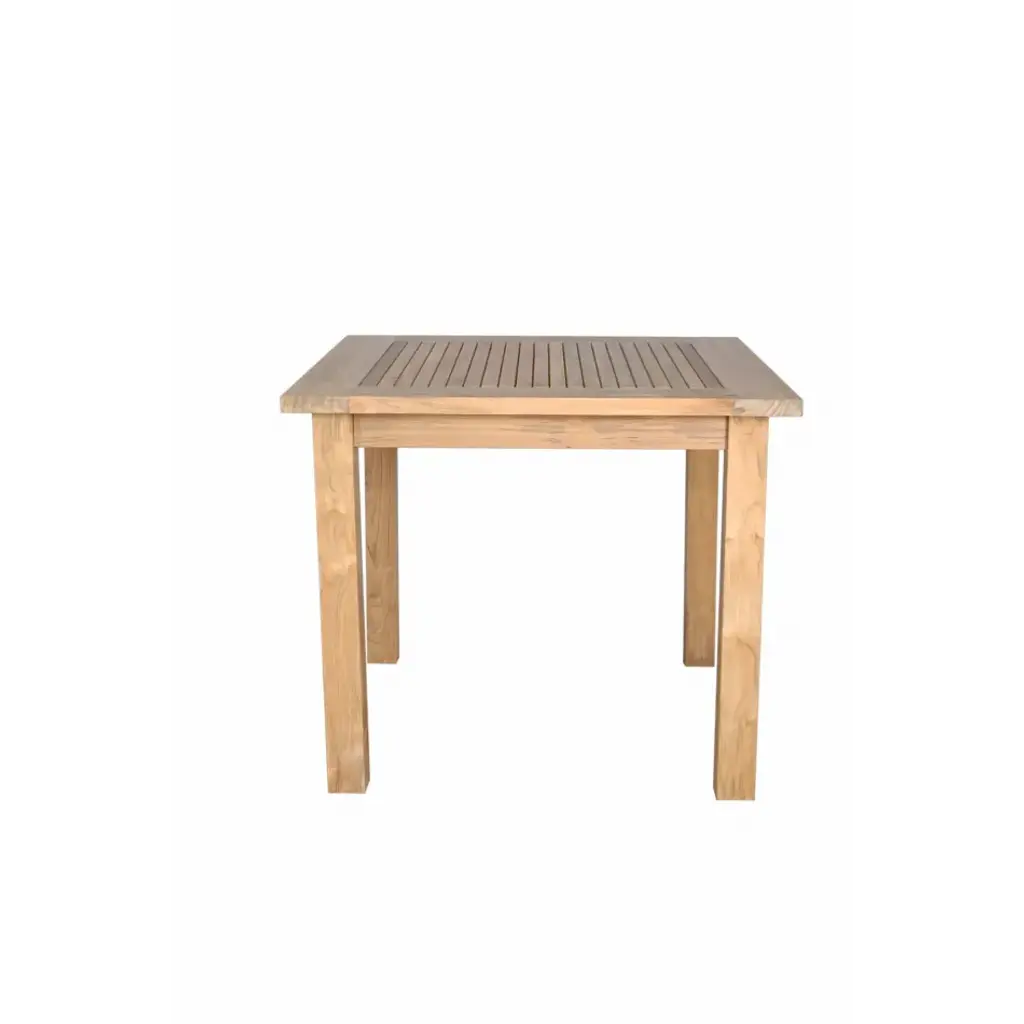 Enjoy an outdoor lunch in the patio, garden, or yard with the Windsor 35” Square Bistro Table. Sturdy and spacious for medium spaces, It is also perfect for boating, restaurants, and café where space is limited. Made from genuine teak wood sanded smooth to the touch, it is the perfect material for weathering the outdoors through rain, hail, or shine. Slats on the table top makes the table refined and elegant. Seats up to four people.