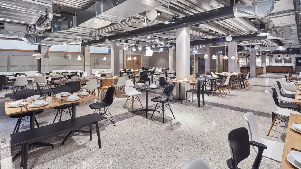The Bistro Tables by Ronan and Erwan Bouroullec share the same elegant cruciform base as the Softshell Chair. Due to an understated aesthetic, each table can be combined with a wide variety of chairs – and the variants with a solid core top are also suited for outdoor use. The Bistro Tables are available with round or rectangular table tops and also in a standing-height version.