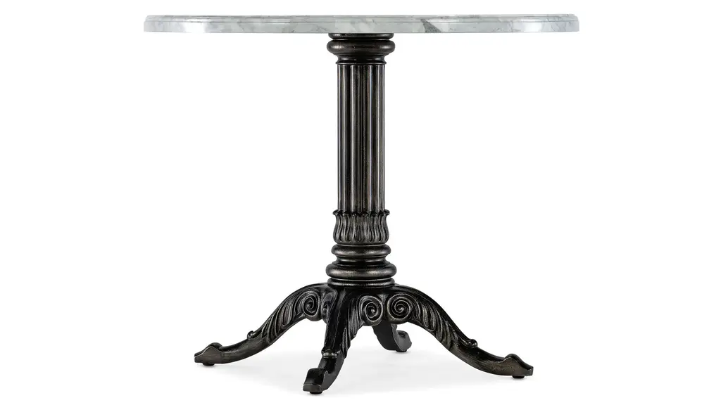 Inspired by timeless Paris bistro tables, the Charleston Bistro Table is a classic design with a Veneered Carrara Stone top and a carved pedestal base that takes its' inspiration from the decorative iron gates that adorn the stately properties in Charleston. Will accommodate up to 4 with coordinating chairs.