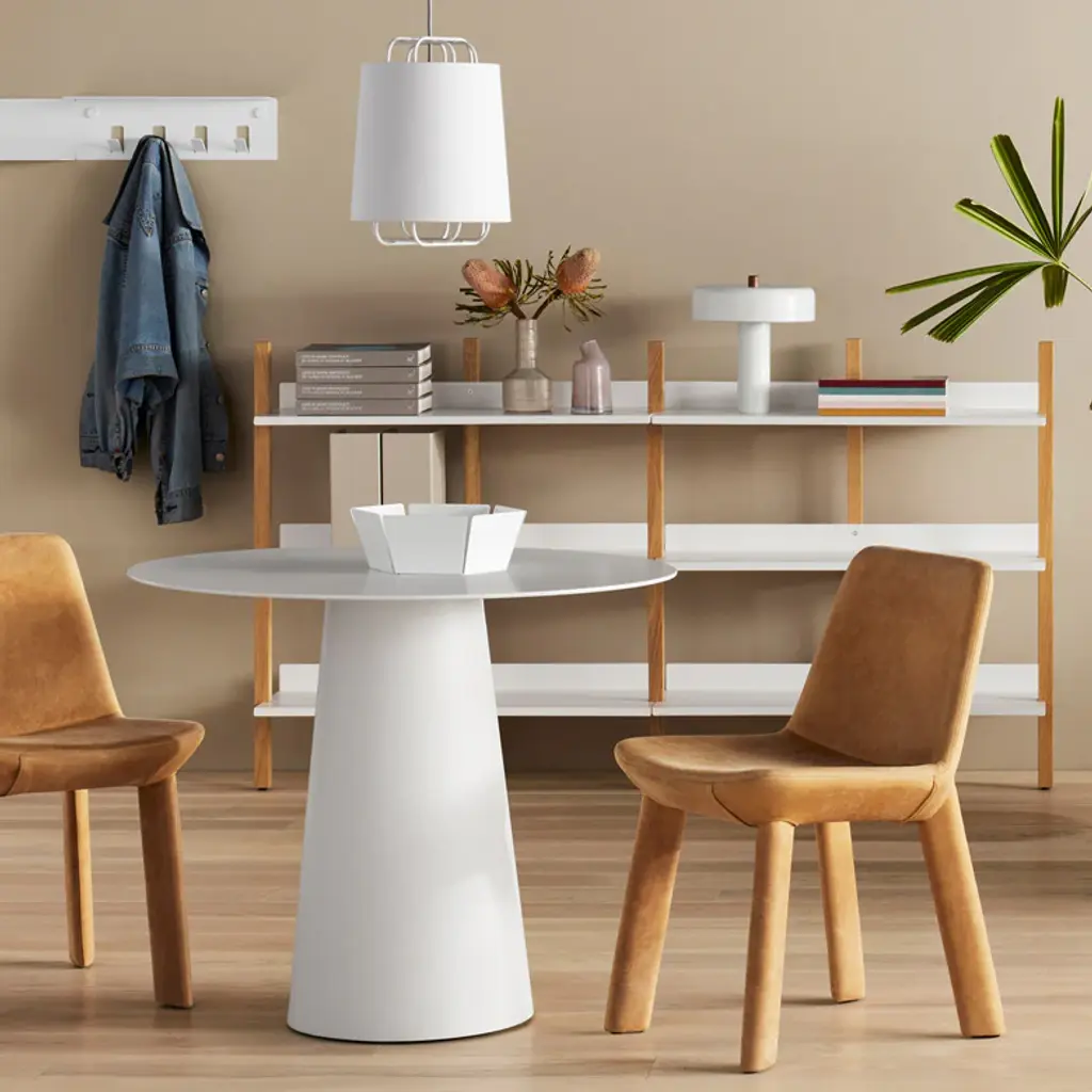 Ready to help you craft a simple patio seating area or indoor breakfast nook, the Circula Cafe Table from Blu Dot is contemporary design at its finest. Crafted from powder-coated aluminum, this round and regal design is ideal for simple meals alfresco or late night drinks in the lounge area. Pair with a striking dining chair topped with a fabulous cushion for a touch of comfort to ensure the conversation lasts well into the night. Perfectly proportioned to seat three people comfortably, this cafe table is a great dining option for smaller spaces or compact city apartments. Highlights