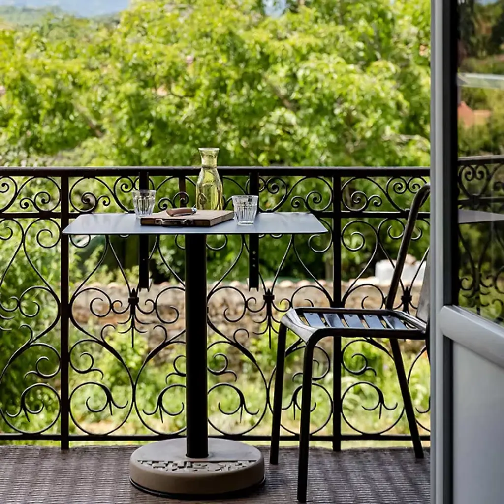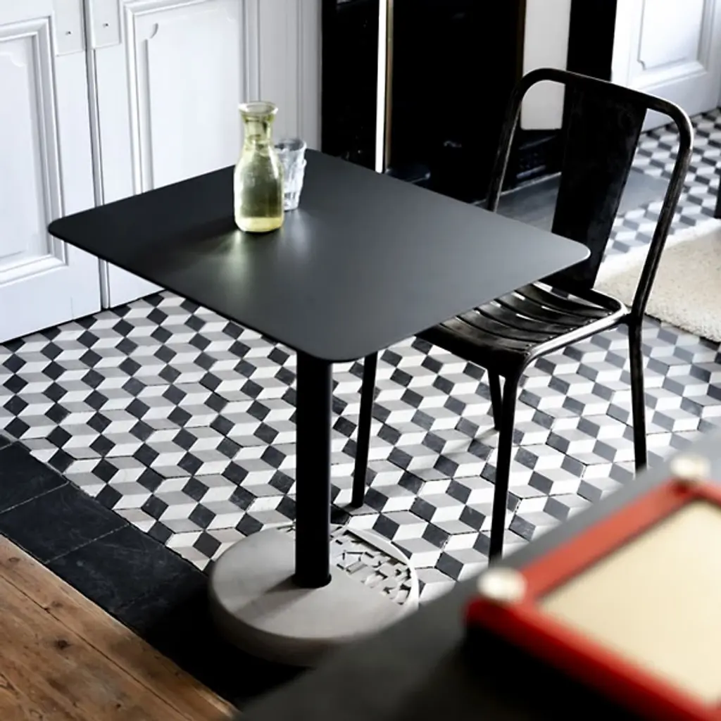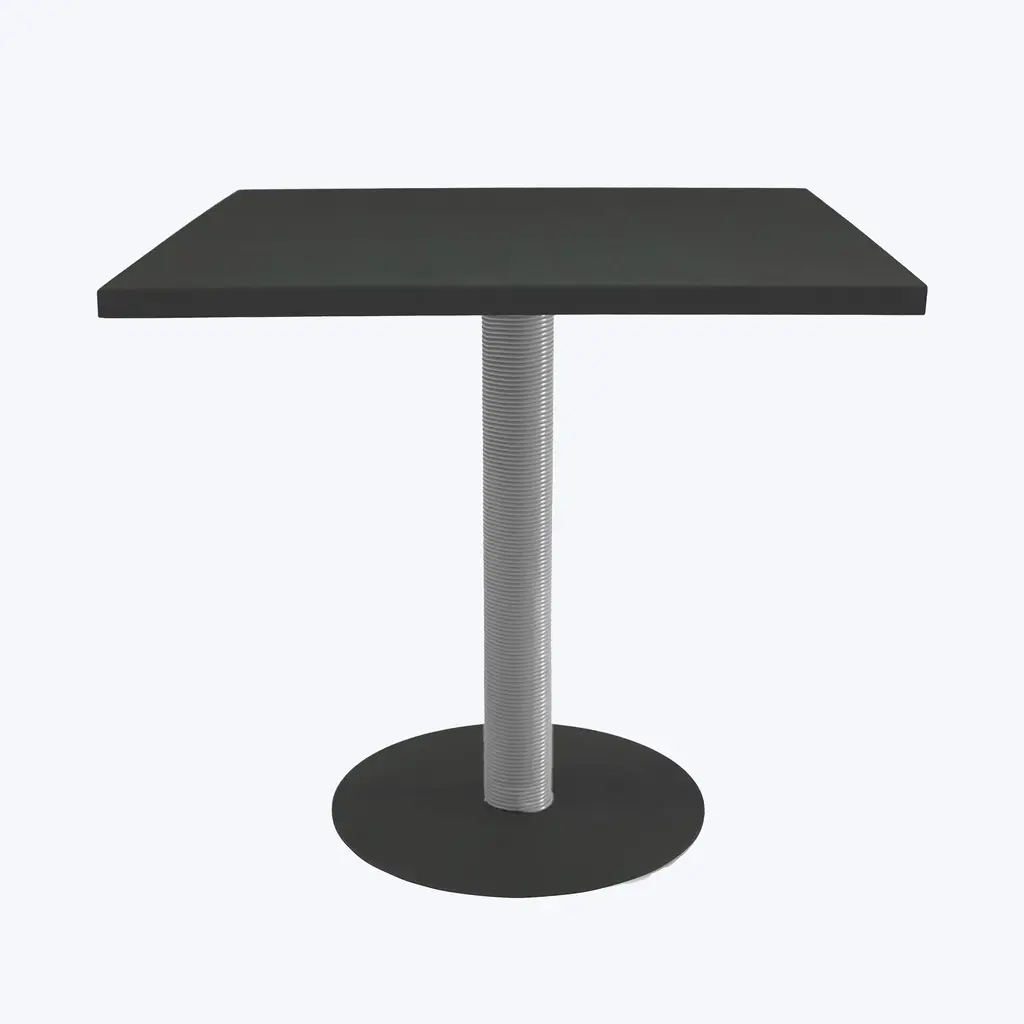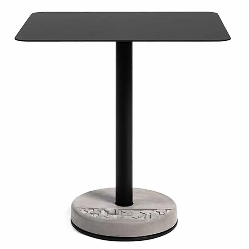 Expand your living spaces with the elegant and appealing Donut Outdoor Rectangular Bistro Table from Lyon Beton. A smooth minimalist offering made in France with a touch of the abstract, it starts by setting a part-contoured concrete “Donut” ring around the table’s central column that rises from a disc base below. Fashioned from the same robust aluminum as the base and top, the column rises to a thin but tough round-cornered upper surface that incorporates a matte-textured epoxy to give it an enduring character in a range of environments.