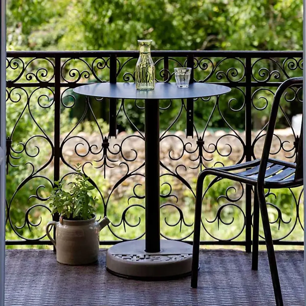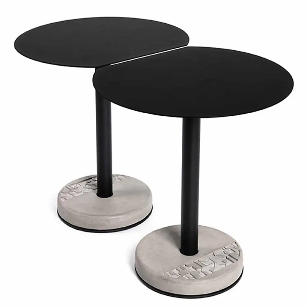 Make the most of confined spaces with the daring design of the Donut Outdoor Round Cutaway Bistro Table from Lyon Beton. A clever and casual French piece compatible with contemporary and minimalist décor, it blends a rounded aluminum base with a partially contoured concrete “Donut” weight that gives the table its name, the lighter surface contrasting well with the matte-textured epoxy that surfaces the metalwork. The disc-shaped tabletop is partially cut away on one side, enabling the table to be placed flusher with a wall or balcony and making the most of even very small spaces.
