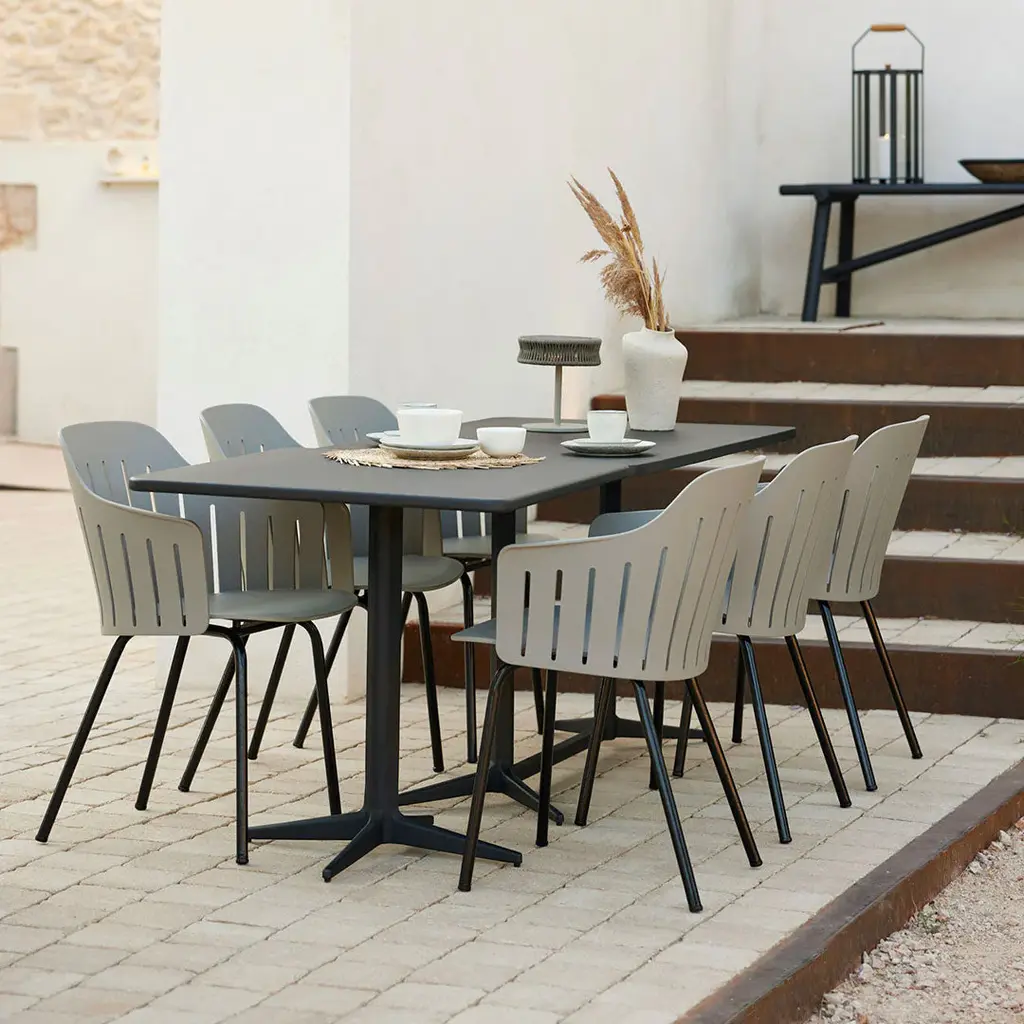 The Drop cafà © table combines an edgy tabletop with a softer shape in the aluminum frame. This provides a completely new style of outdoor tables to our assortment. The table top forms a resilient and raw surface, inspired by a Nordic lifestyle and with the ambition of designing a stylish yet resistant table. Choose between different frames and table tops. The Drop cafà © table gives you the option to customize as you desire, use the table alone or put multiple tables together.