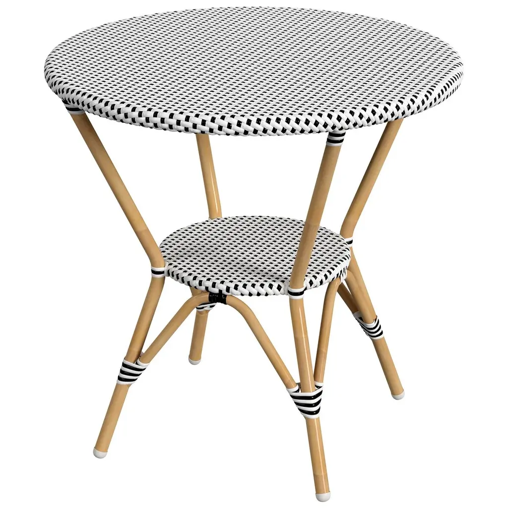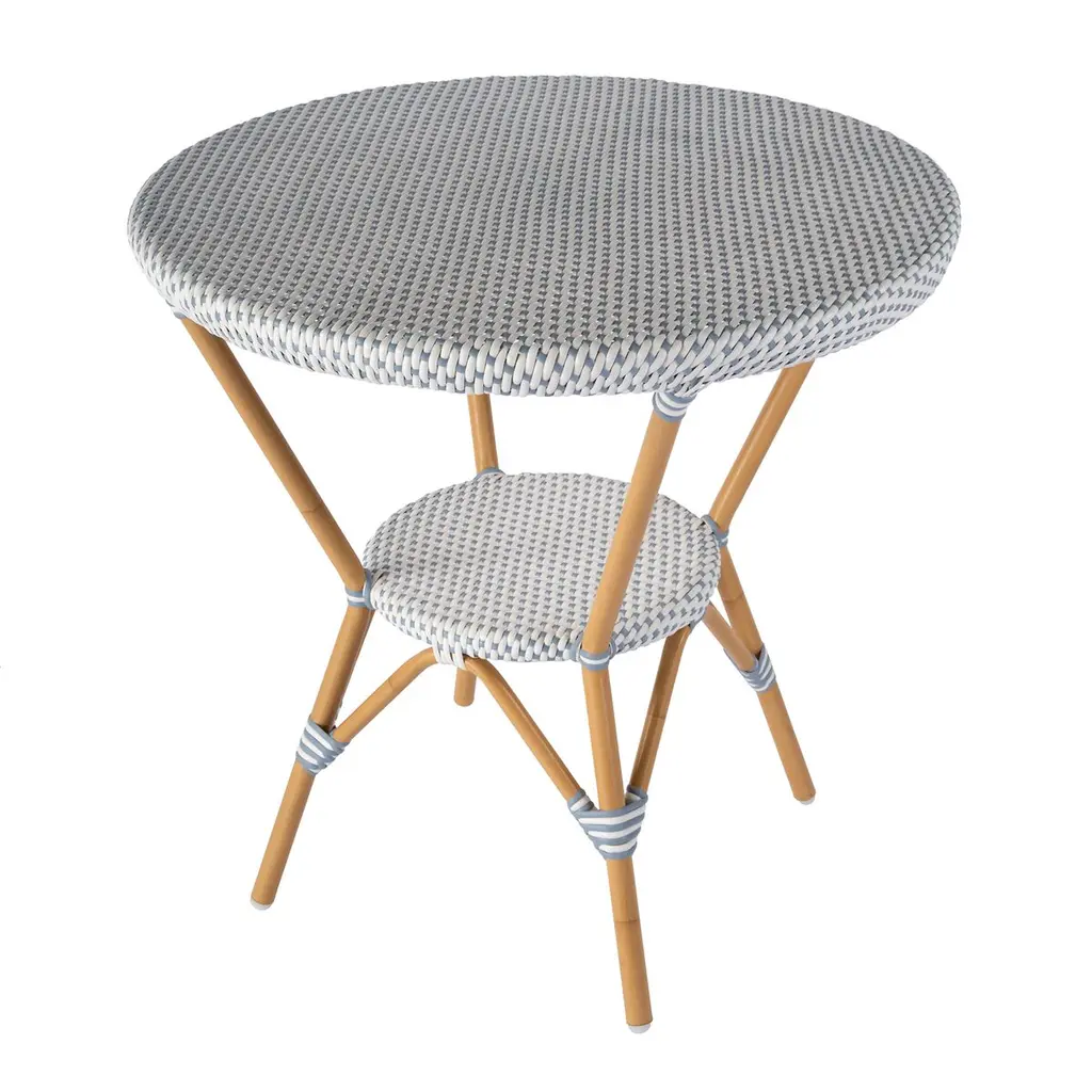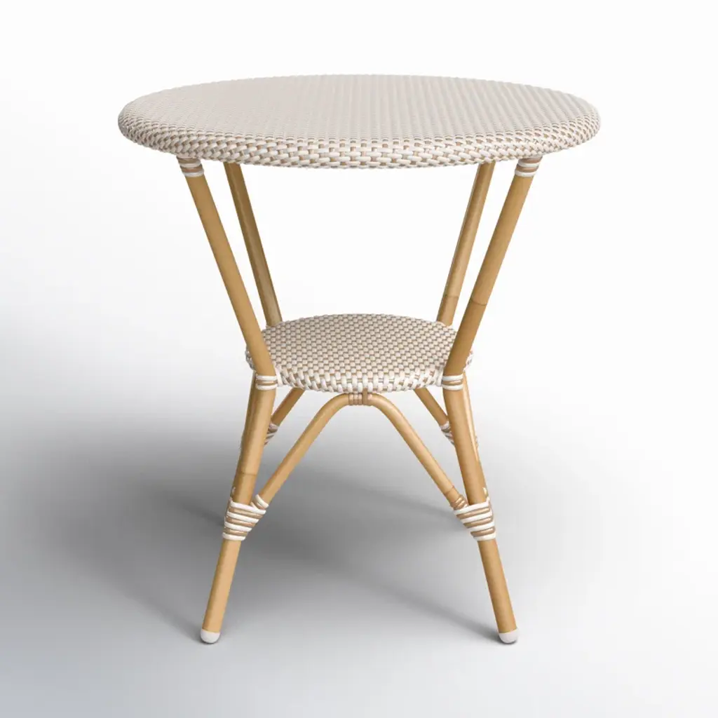 Serve cozy dinners for two under the stars with our round bistro table. A powder-coated aluminum frame comes in a distinctive finish that's resistant to weather, water, rust, and UV rays. And we love the handwoven synthetic rattan detailing that ramps up the airy coastal vibes a notch. Pair with coordinating chairs (sold separately) and set your table with crisp linens and a pretty bouquet.