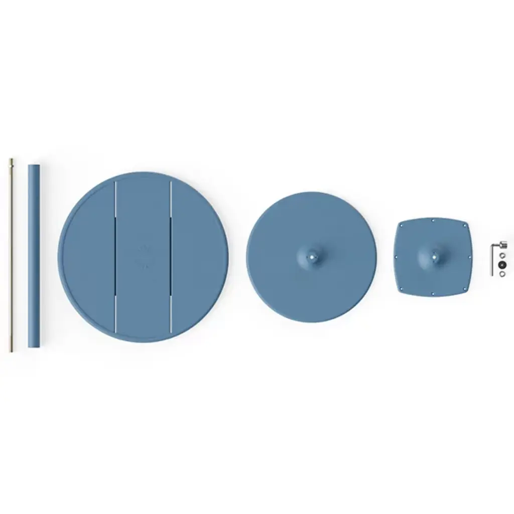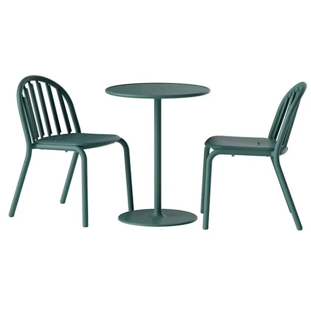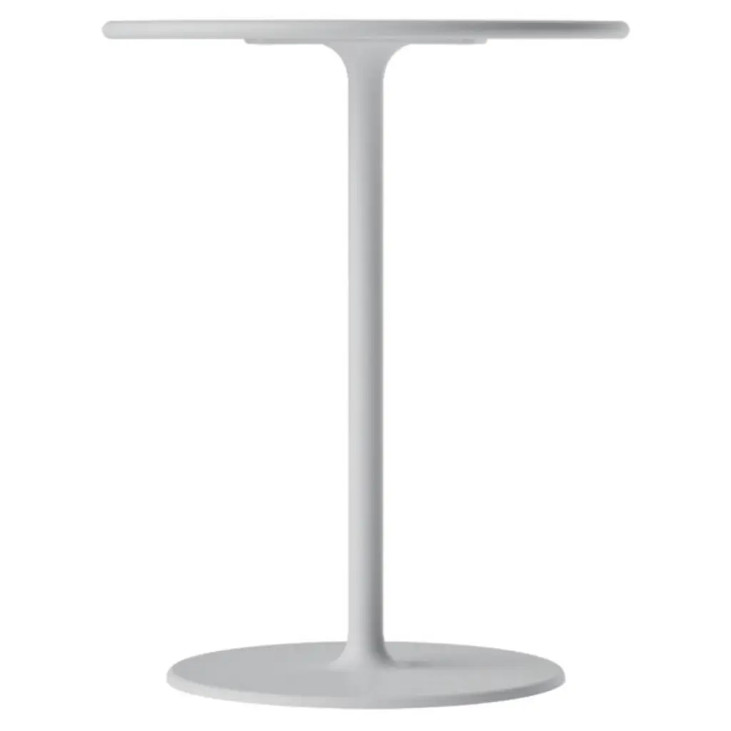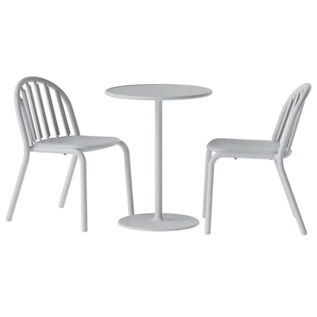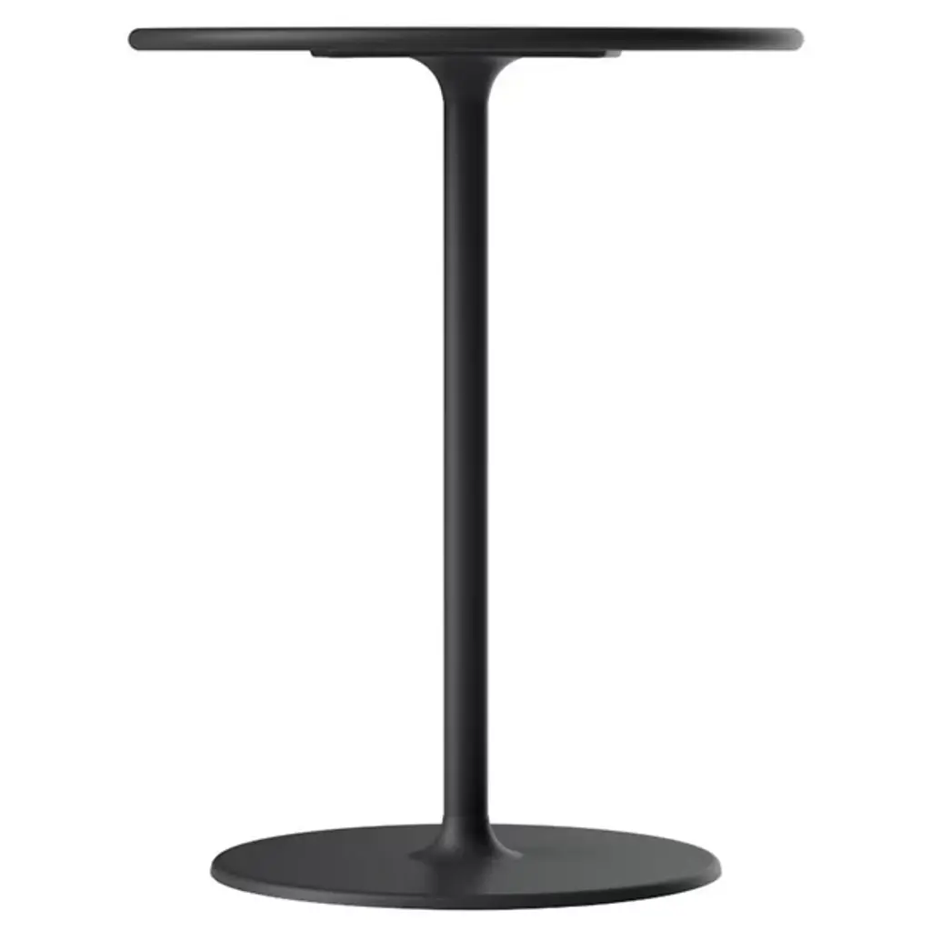 The Fred's Outdoor Bistro Table from Fatboy adds a compact closeness to exteriors. Ideal for adding a café-style presence when space is at a premium, its strong, weighted cast-iron base secures an aluminum stem and top, with further intrigue added by the parallel aluminum planks across the top that shed water. The weather-resistant finish ensures strength in dramatic weather shifts, while its circular base conceals a secret: smaller, adjustable feet placed beneath it that help the tabletop stand straight and level, even on uneven surfaces.