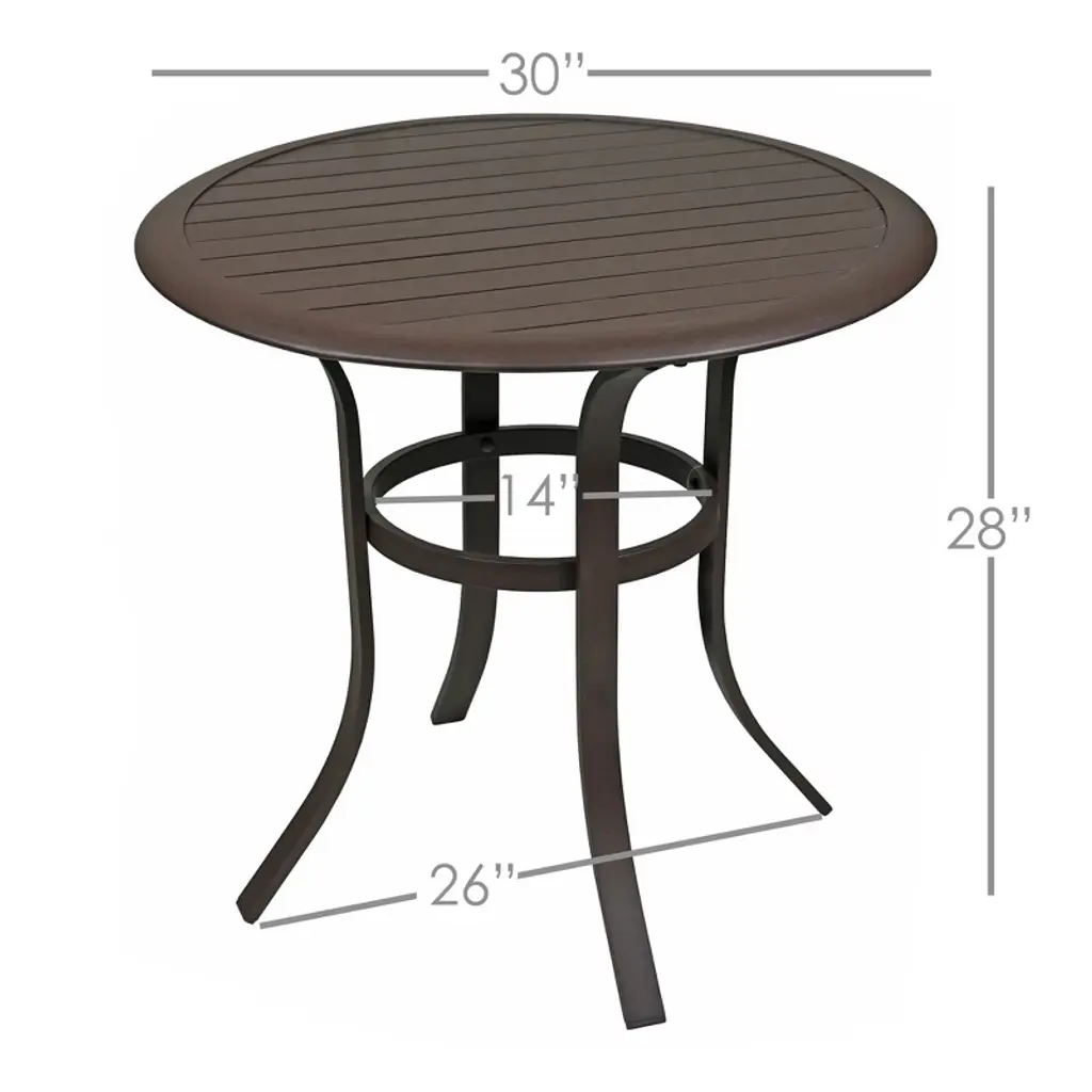 Garden Elements Round Outdoor Patio Bistro Table, Aluminum Frame With Slat-top Tabletop, 30"