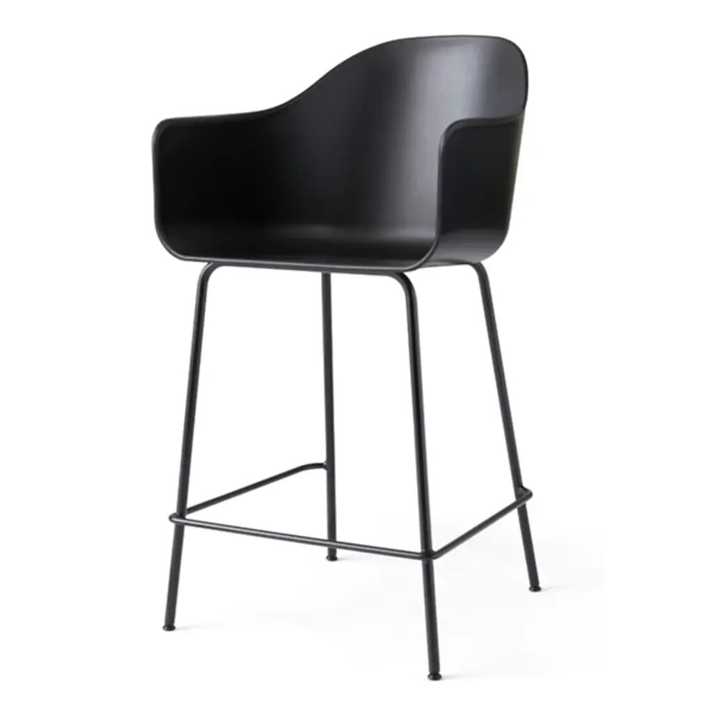 Relax back into the contoured back of the Harbour Bar / Counter Stool by Audo Copenhagen, formerly known as Menu. It’s a tall, elegantly simple piece designed by Norm Architects that tucks you into a seat of polypropylene and glass fiber set atop a sturdy frame of powder-coated steel topped off with a U-shaped rest for your feet. Its versatile, minimalist, Scandinavian style works well in a wide variety of environments as a solid choice for seating at café tables and breakfast bars that won’t overpower other furnishings.