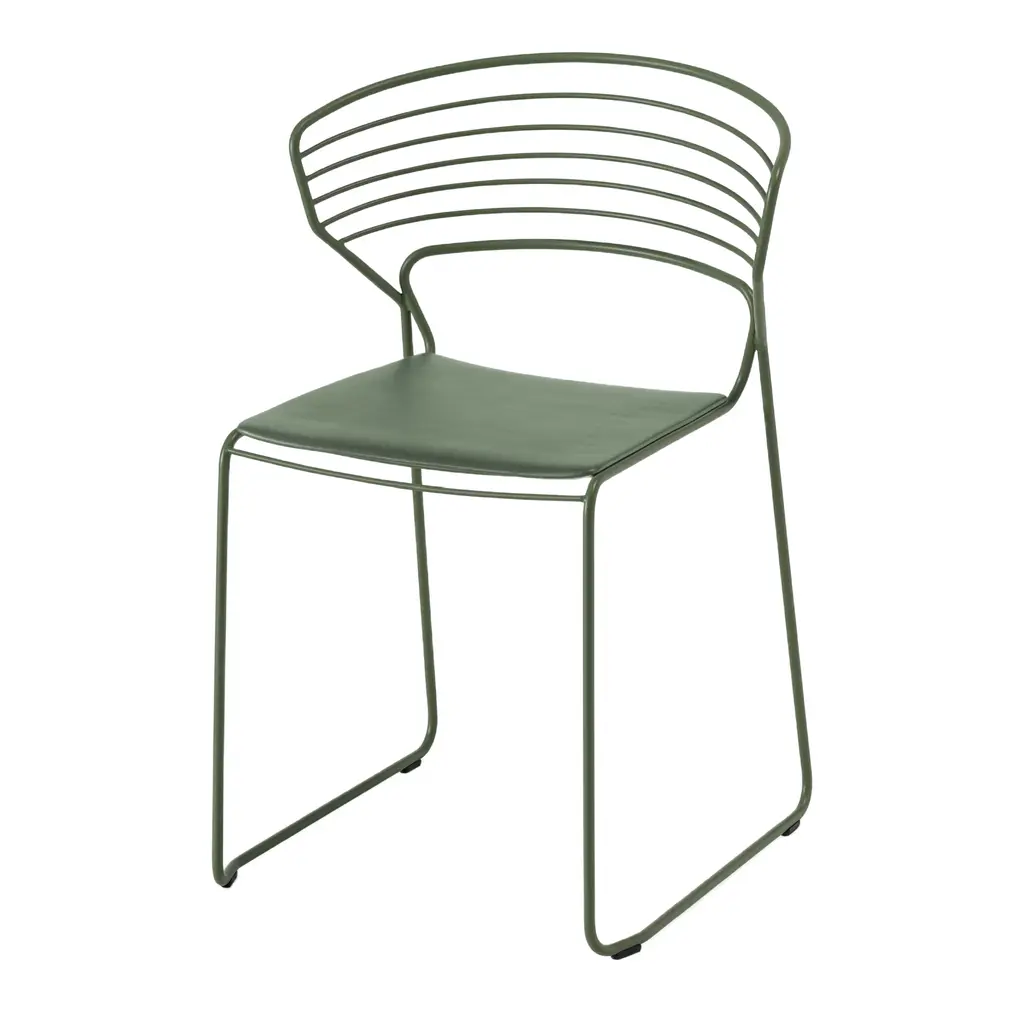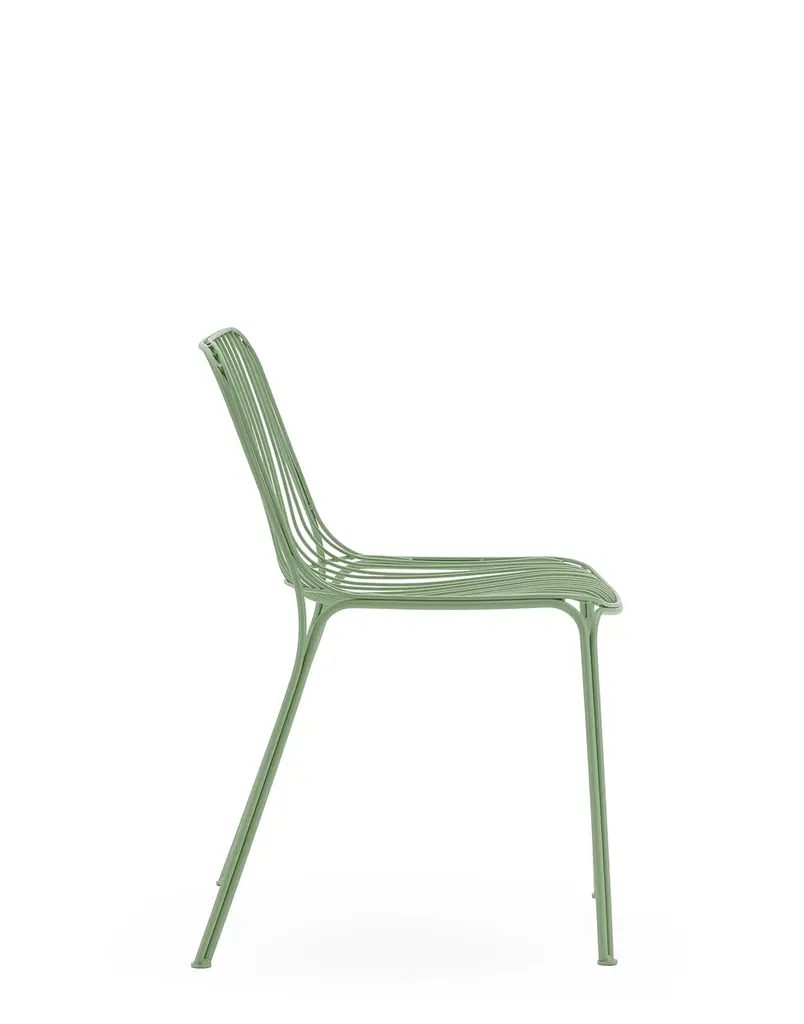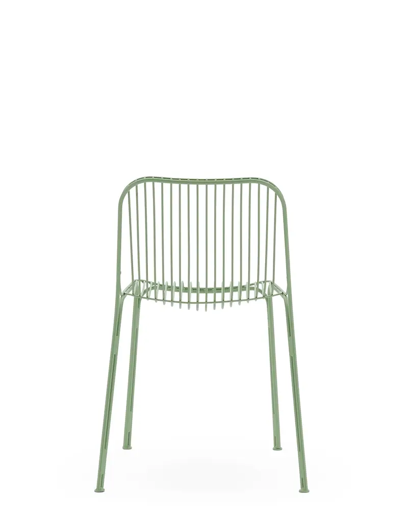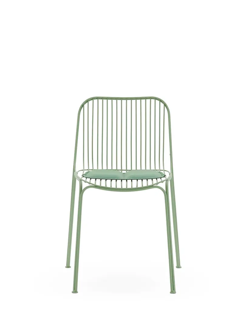 HIRAY takes metal, one of the most important materials for the greening of the Kartell catalogue, and uses the welded wire process to shape it. The result is an essential and functional product that is nevertheless rich in emotion. Metal wires form well-defined yet lightweight structural parts of the collection’s chair, chair with arms, bistro table, armchair, divan and side table. The various articles come in white, Bordeaux, black and green.