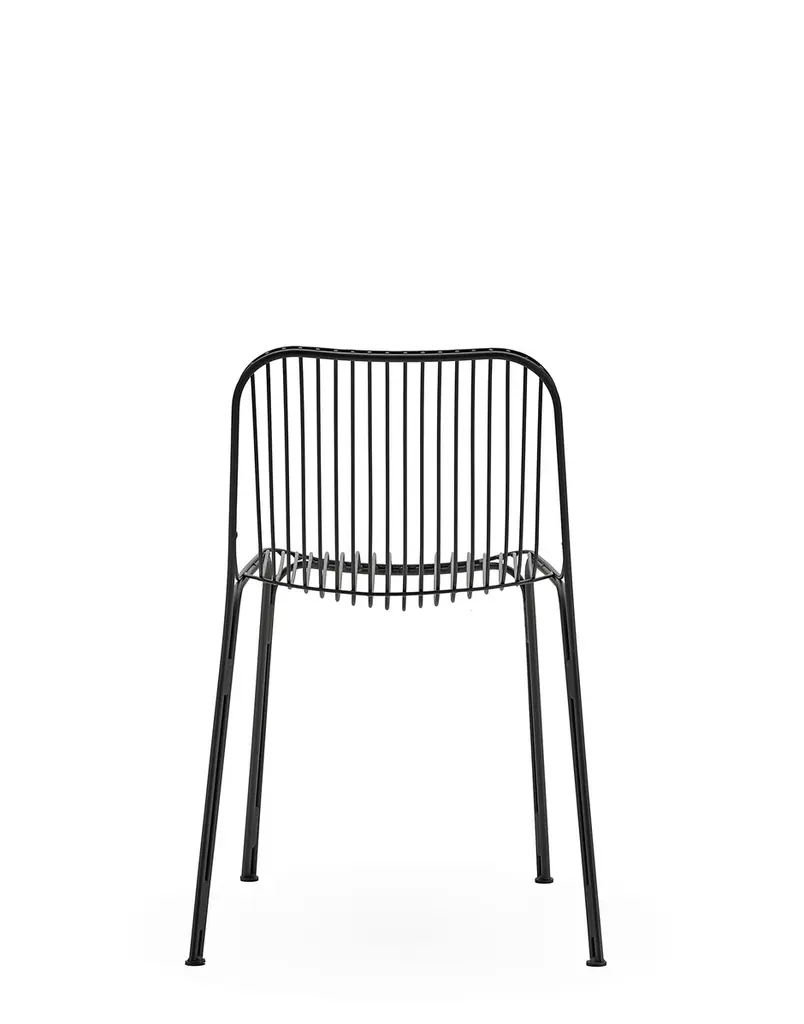 HIRAY takes metal, one of the most important materials for the greening of the Kartell catalogue, and uses the welded wire process to shape it. The result is an essential and functional product that is nevertheless rich in emotion. Metal wires form well-defined yet lightweight structural parts of the collection’s chair, chair with arms, bistro table, armchair, divan and side table. The various articles come in white, Bordeaux, black and green.