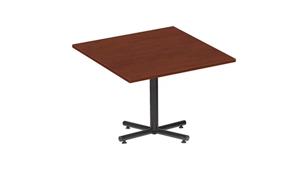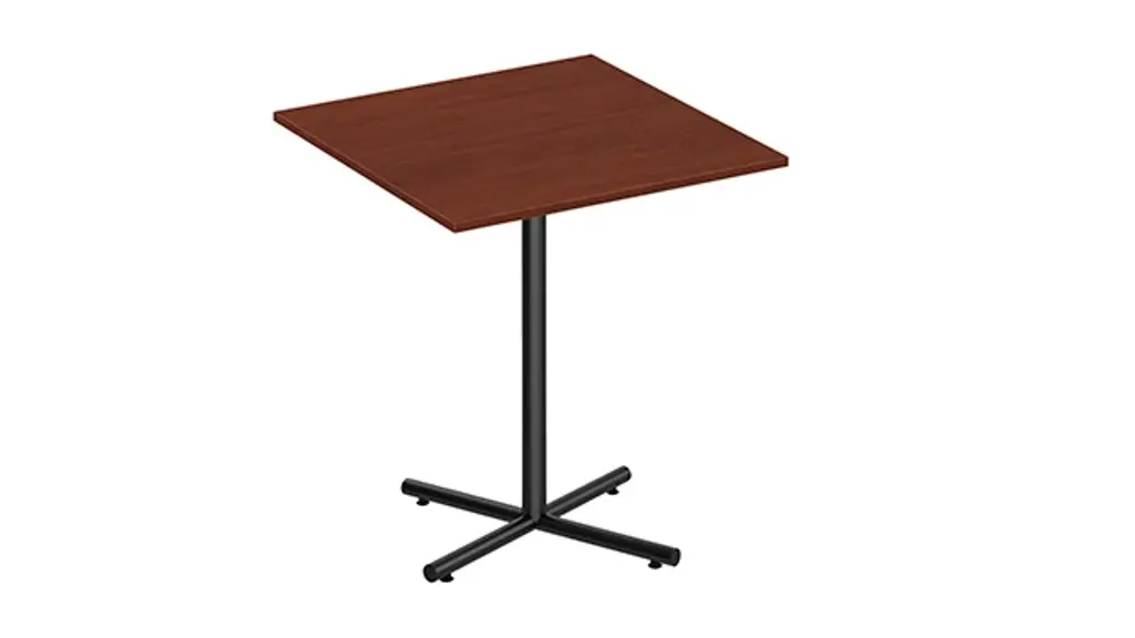 Need a cozy space to take a break or socialize? Experience the new Café Tables from National Public Seating. 1 1/4” High Pressure Laminate tops with T-Mold are available in standard and custom colors. Trendy legs available in X-base, T-base or Round Base are made with 16 gauge 3” steel making them perfect for your toughest environments. Legs come with ½” thick non-marring polypropylene mushroom leveling glides to prevent floor scratching. Café Tables are available in round, square, rectangle, racetrack and curve in a variety of sizes. NPS Café Tables are a must have for all cafeterias and breakrooms. Overall Dimensions: 36" D x 42" H. Ships ready for easy assembly.