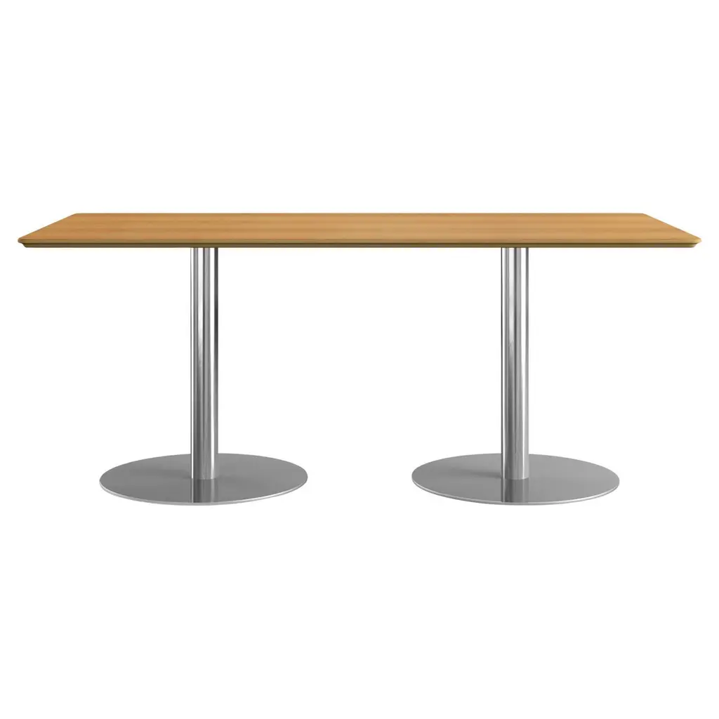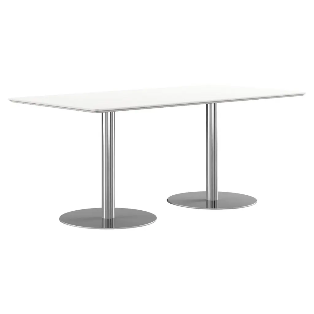The TFL3672 is a 36 x 72" rectangular pedestal table. It has a 1.25" thick laminate top that's durable and easy to clean. The top has an attractive 3MM matching edge that won't crack or peel. The attractive round cast iron base has levelling glides to prevent the table from wobbling on uneven floors. The column has a 3" diameter and is made of 16-gauge steel. Table is 29" in Height. The top and base are shipped in one box. Made in USA. Overall Dimensions: 36" W x 72" D x 41" H. Ships ready for easy assembly.