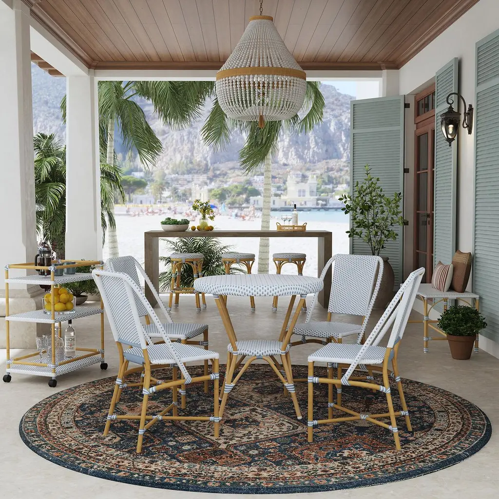 Our Kye outdoor collection has the same chicness and pizazz as our indoor Kye styles but with an updated frame, making this entirely outdoor-friendly and ready for all of the elements thrown its way. The handwoven synthetic rattan bistro top lends an airy coastal vibe that's perfect for breakfast on the patio or an evening meal outside. Pair this with coordinating chairs (sold separately) or mix it up for an eclectic look.