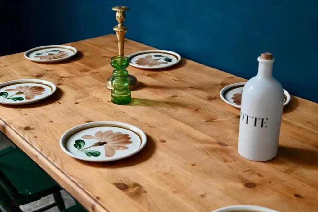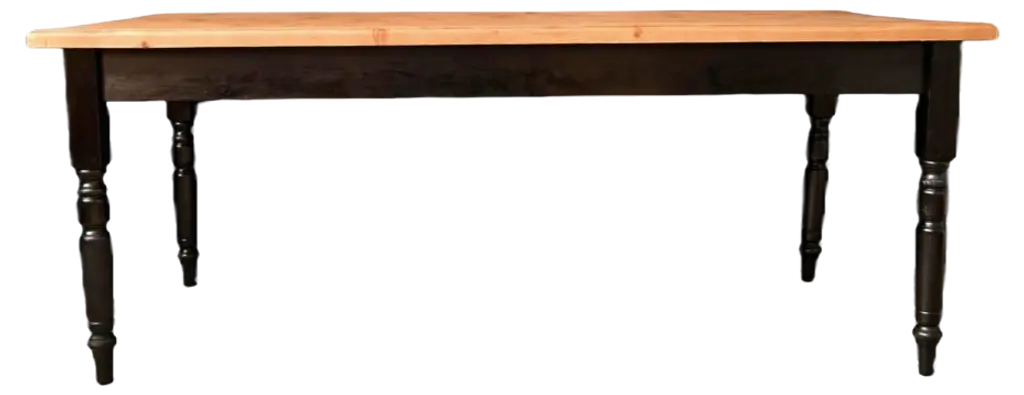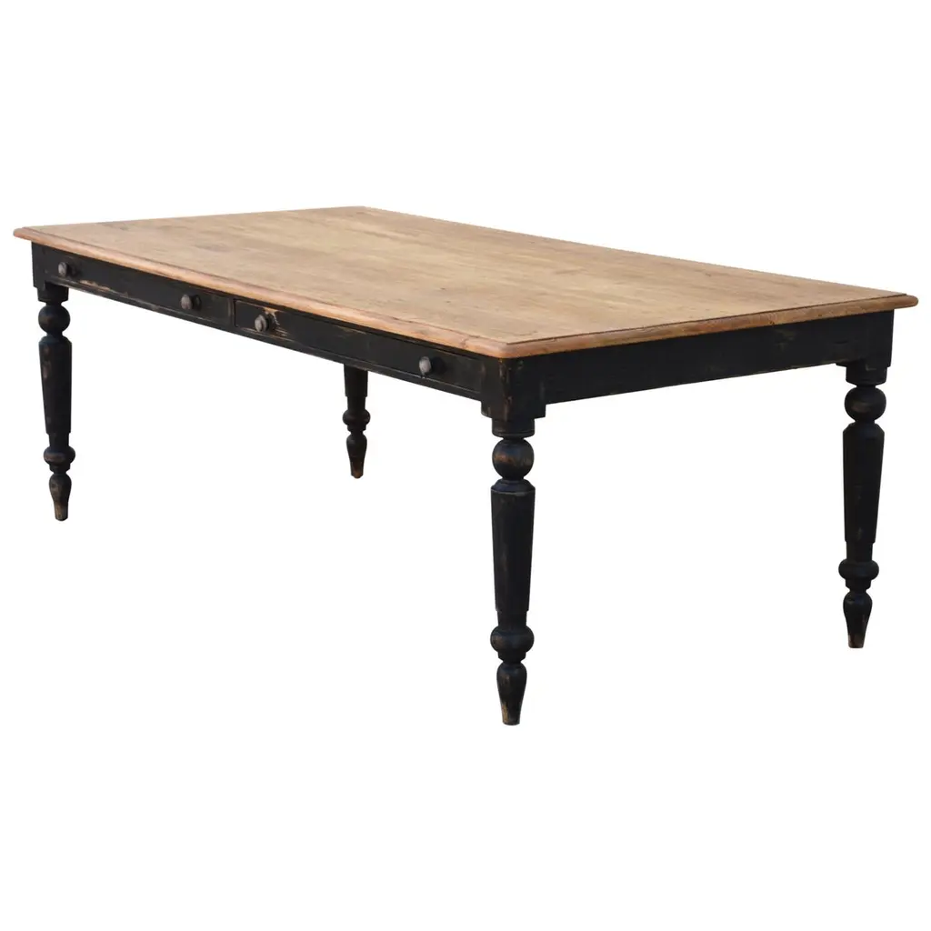 Beautiful dimensions, this large bistro table is an ode to conviviality! The tree tray is carried by elegant black feet in turned wooden. Its golden shade and his tender patina give him a little bohemian, simple and touching air. Old, this table is easy to adopt. Associated with bistro chairs or a colorful set, she will offer moments of shared joy! The table is old and dates from the 70s. It is made of solid wood. The feet are removable. It is in very good condition. Small traces of use are visible. In the minds of large farm tables, it gives off a chic country spirit, spicy with a hint of sophistication! 200cm in length, 90cm wide, 79cm high.
