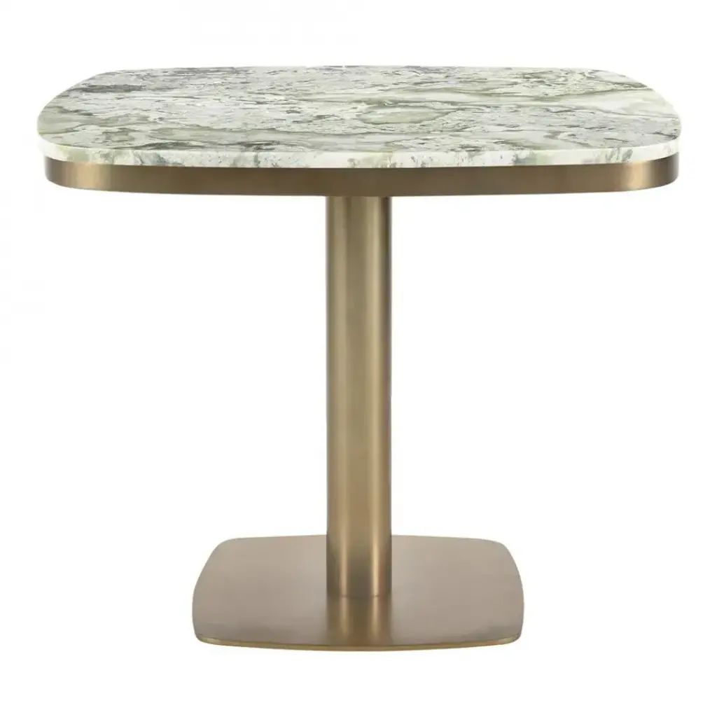 The iconic Lixfeld bistro table, revamped and modernised with its authentic jade top that matches its brass-effect base.Genuine jade top, each piece has a unique thickness of 16 mmMetal base with aged brass effect finishFor 2 place settingsReady to assemble, instruction sheetJade is a naturally porous material sensitive to heat (risk of cracking).
