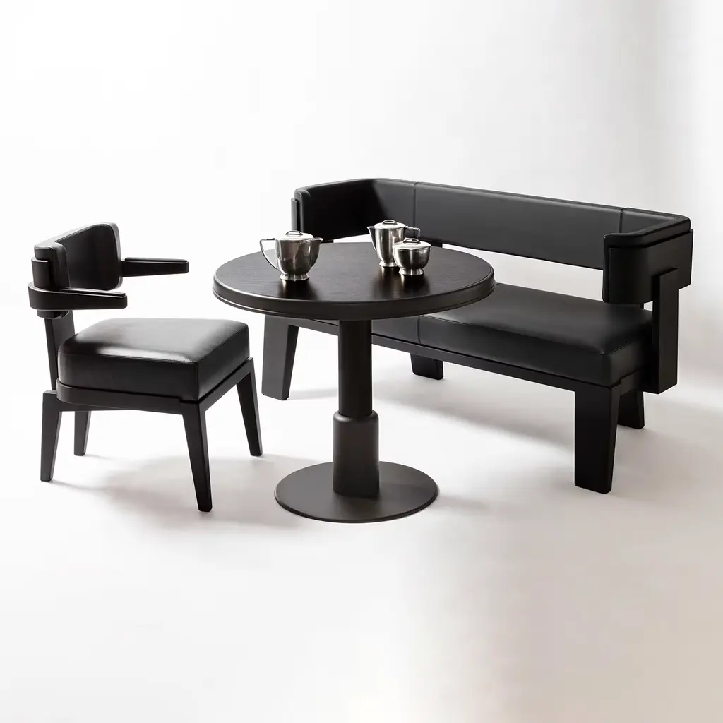 Born from the juxtaposition of slender and massive volumes, the Lluis collection features contemporary furnitures boasting harmonious geometries. Each piece is distinctive for its clean lines, with a dynamic interaction between sinuous and rigorous shapes resulting in a unique, magnetic charm, enhanced by the use of natural materials such as leather and wood: living materials able to maintain their uncontaminated appeal over time. A series of iconic pieces by the Belgian designer Glenn Sestig.