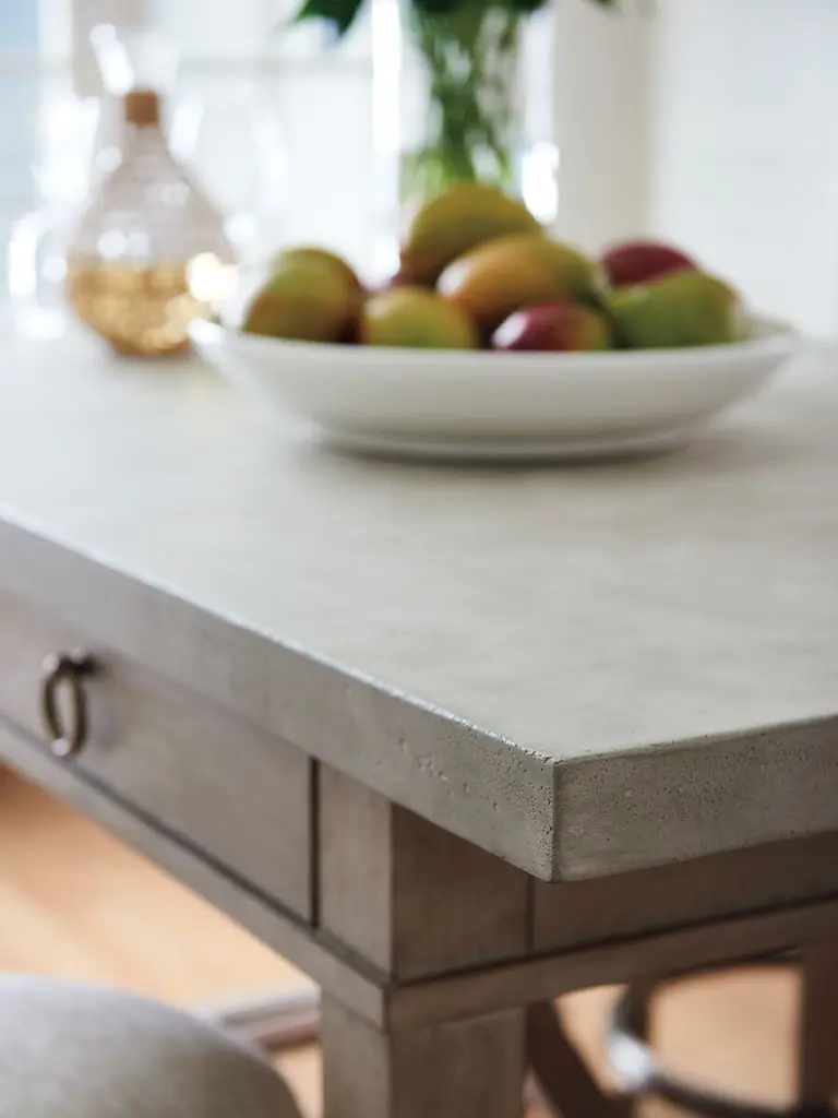 Designed by Barclay Butera, this bistro table is an ideal marriage of function and fashion. The cast-concrete top makes it suitable for use as a kitchen island, and it has four drawers for always-welcome storage.