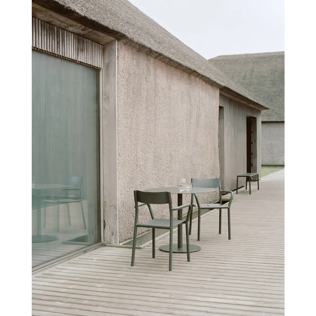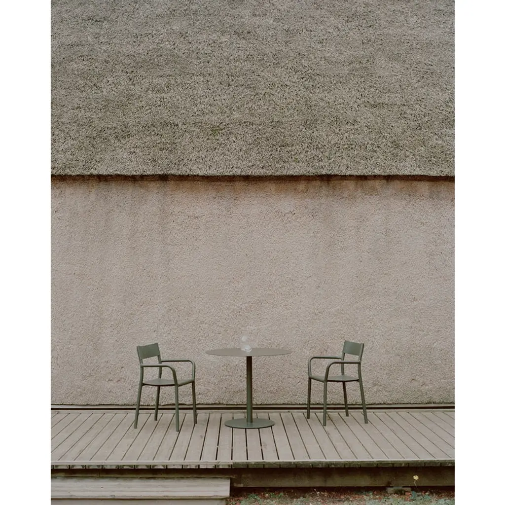 The May Bistro table by New Works is a compact, round outdoor table designed for versatile use. Its clean, minimalist form makes it a natural fit for balconies, gardens, and café or summer cottage terraces alike. The elegantly shaped single-leg bistro table is also a great choice for smaller spaces. The May series, designed by Hannes & Fritz for New Works, enriches your outdoor living with its lightweight yet sturdy terrace furnishings. The patio chairs and garden tables in the May collection are made from powder-coated steel, which can withstand the summer's changing weather conditions, all from heavy rain to scorching sunshine.