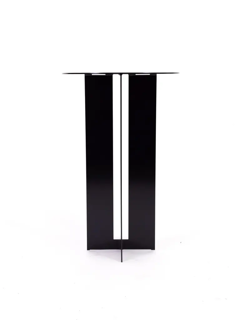 The Mers Café Table is fabricated from solid aluminum and is suitable for use indoors and out. Form is inspired by the simple utilitarianism of West Coast aluminum fishing boats.Shown in aluminum with Black painted finish.Custom sizing and colors avaiblable.Overall dimensions: 26" D x 41" HAll New Format pieces are handmade in Vancouver, Canada.