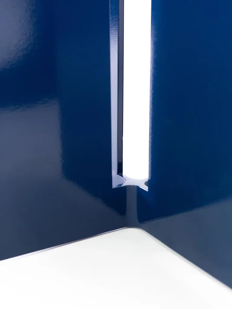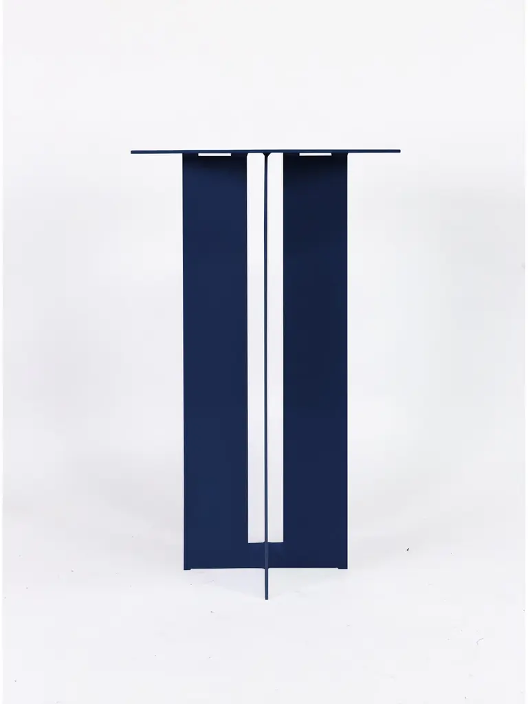 The Mers café table is fabricated from solid aluminum and is suitable for use indoors and out. Form is inspired by the simple utilitarianism of West Coast aluminum fishing boats.Shown in aluminum with pacific blue painted finish.Custom sizing and colors available.Overall dimensions: 26" D x 41" TAll new format pieces are handmade in Vancouver, Canada.