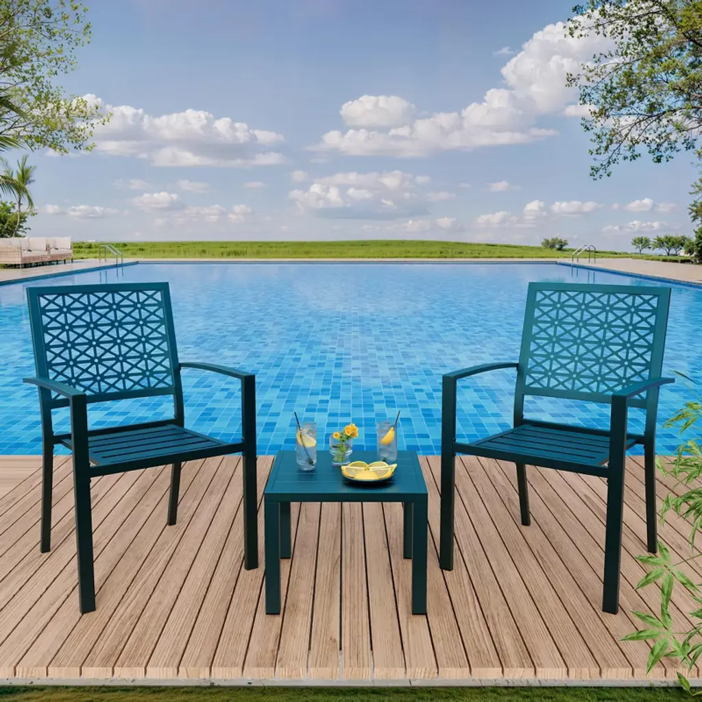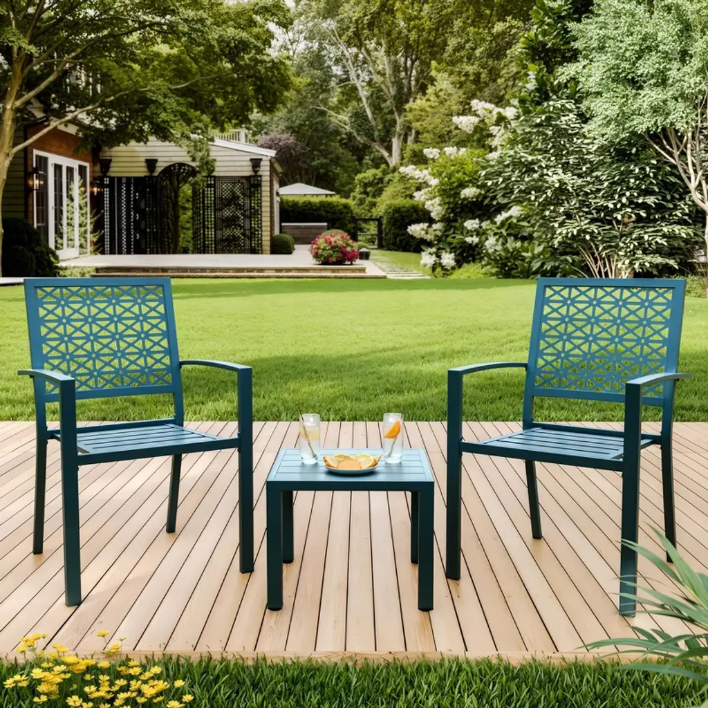 Patio Bistro Set 3 Piece, Bistro Table and Chairs Set of 2 Outdoor, Small Patio Furniture Sets with Coffee Table for Balcony, Front Porch, Apartments, Deck, Backyard,
