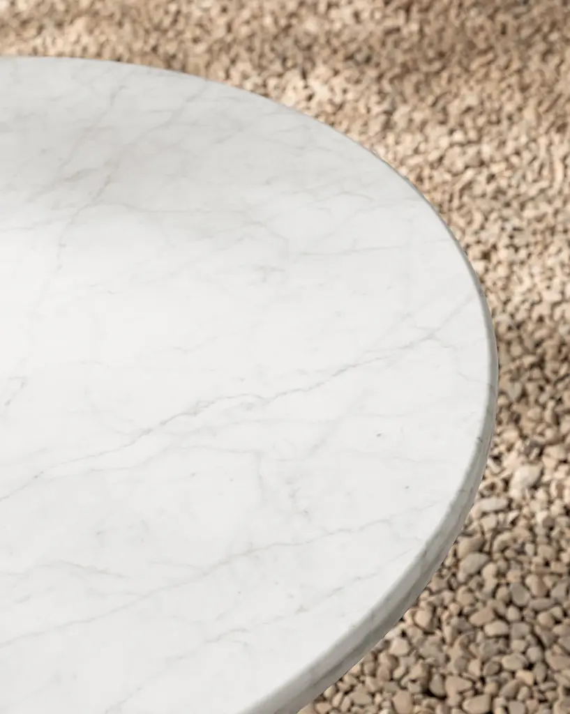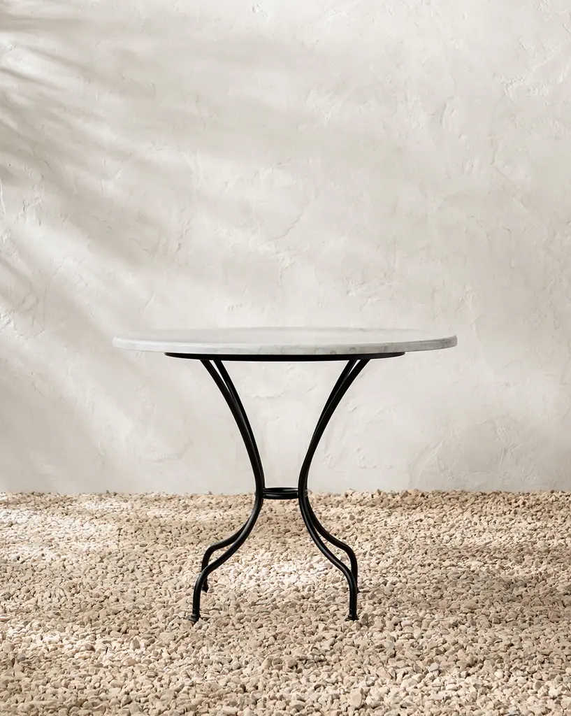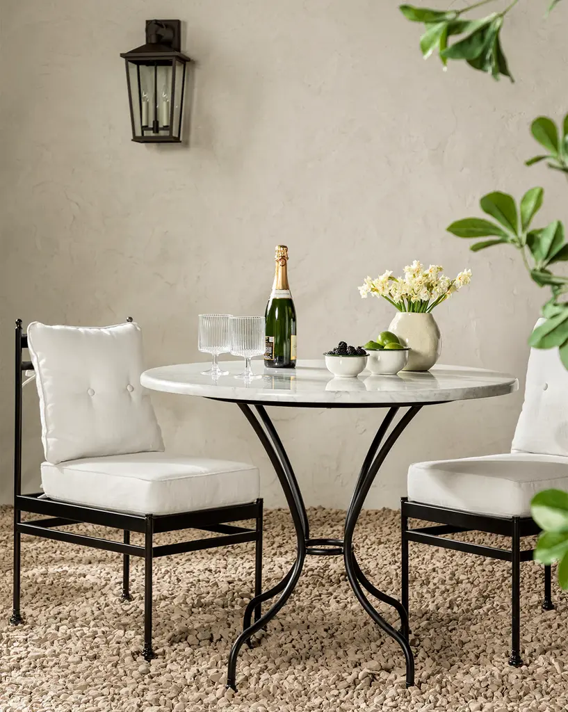 With a sleek solid white marble tabletop supported by an intricately detailed powder-coated steel frame, our Pomeroy Outdoor Bistro Table was designed with beauty and durability in mind. With its timeless form and refined luxurious feel, it offers an enduring elegance that enhances both indoor and outdoor settings.