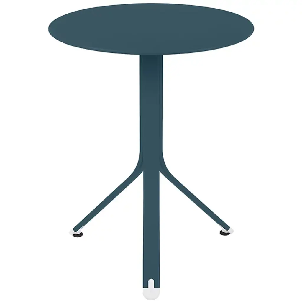 A perfectly petite café table, designed for a restaurant or residential use. The Resto Round Table by Fermob has a small but strong, round electro-galvanized steel sheet top. It sits quite comfortably on a flared aluminum base that’s reinforced with steel rod. What makes this table even more fun to use is its aluminum tilting system, which allows you to flip the tabletop to the side quickly and easily for compact storage. Designed by Tristan Lohner.