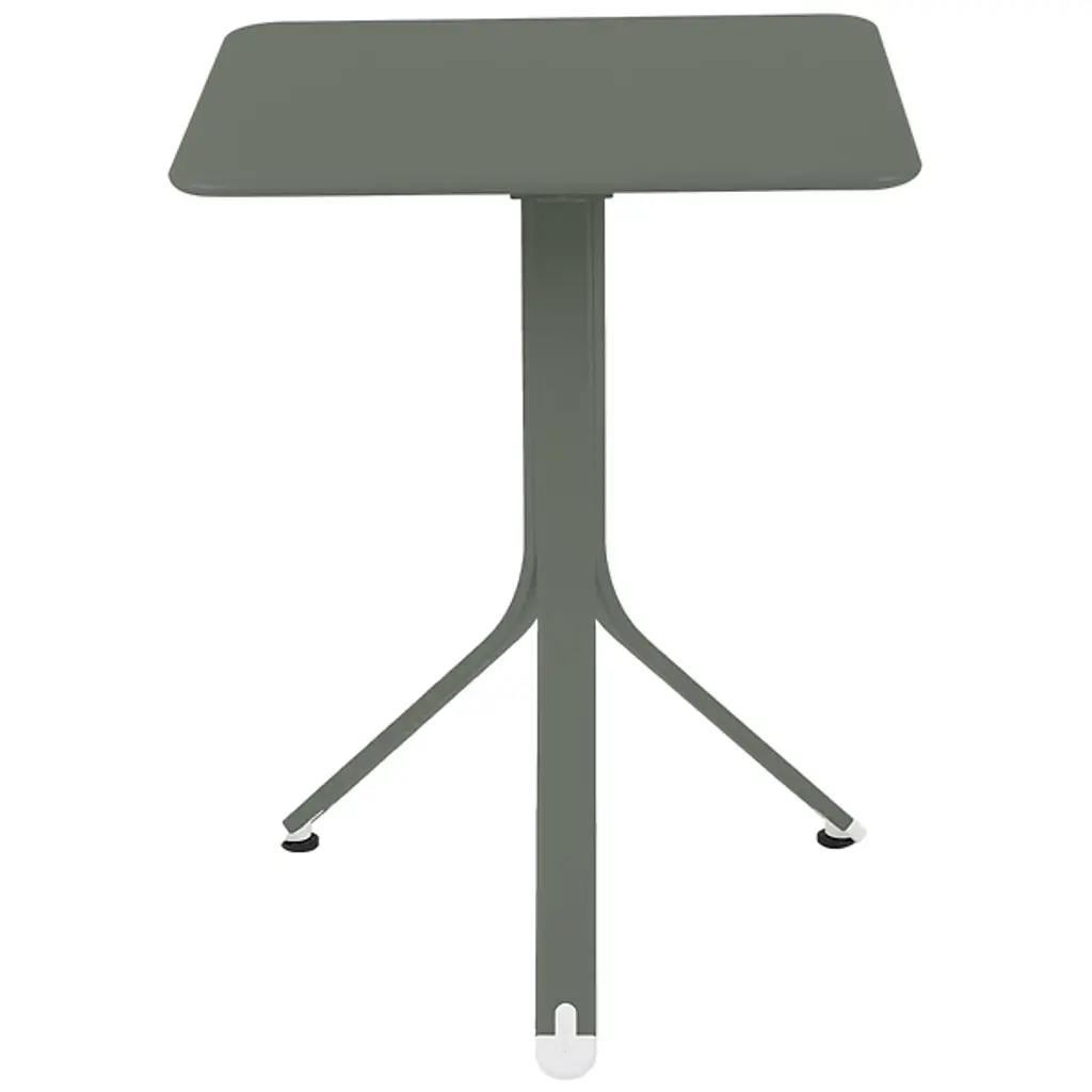 A playfully angular take on the classic café table. Designed by Tristan Lohner, the Resto Square Table by Fermob has a soft-cornered square top made of sheet steel. And what starts off as a steel rod-reinforced aluminum pedestal base splays out into a stable tripod. While already a pleasure to use, this table is also a pleasure not to use. It has an aluminum flap handle that makes it safe and easy to flip the tabletop and snugly nest multiple tables together.