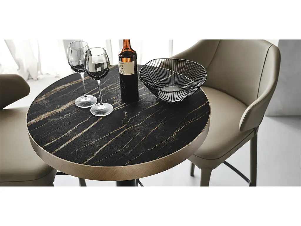 The Ribot bistro table by Cattelan Italia adds a sophisticated style to a modern kitchen or bar area. The juxtaposition between the round tabletop and square base makes it a one-of-a-kind product. With a sleek and minimal silhouette, it fits in well with the rest of the contemporary furnishings. By using luxurious materials, it adds a posh appeal and will be a fixture in the home for years. Manufactured in Italy with incredible attention to detail and designed by Giorgio Cattelan, Ribot bistro table is available in two sizes. The top comes in various ceramic finishes, while the base and frame come in different metal options.