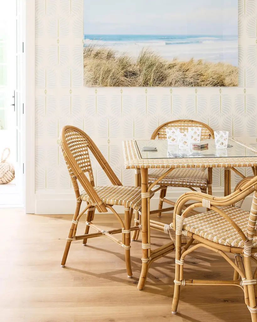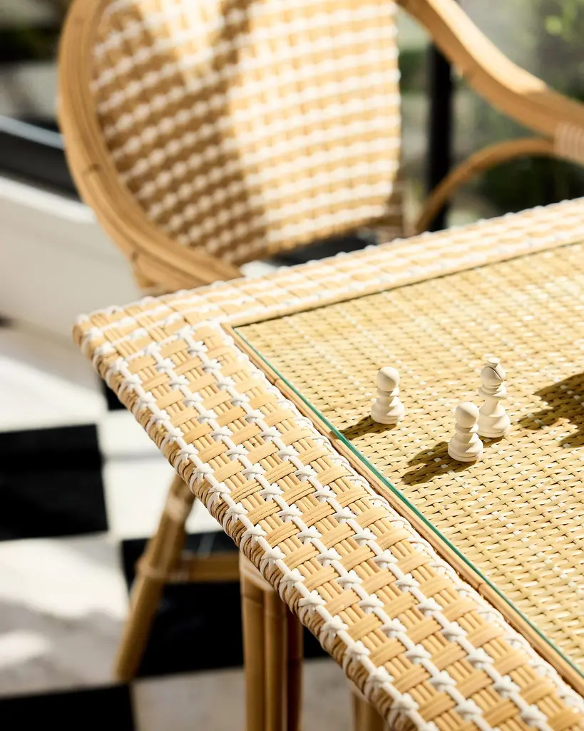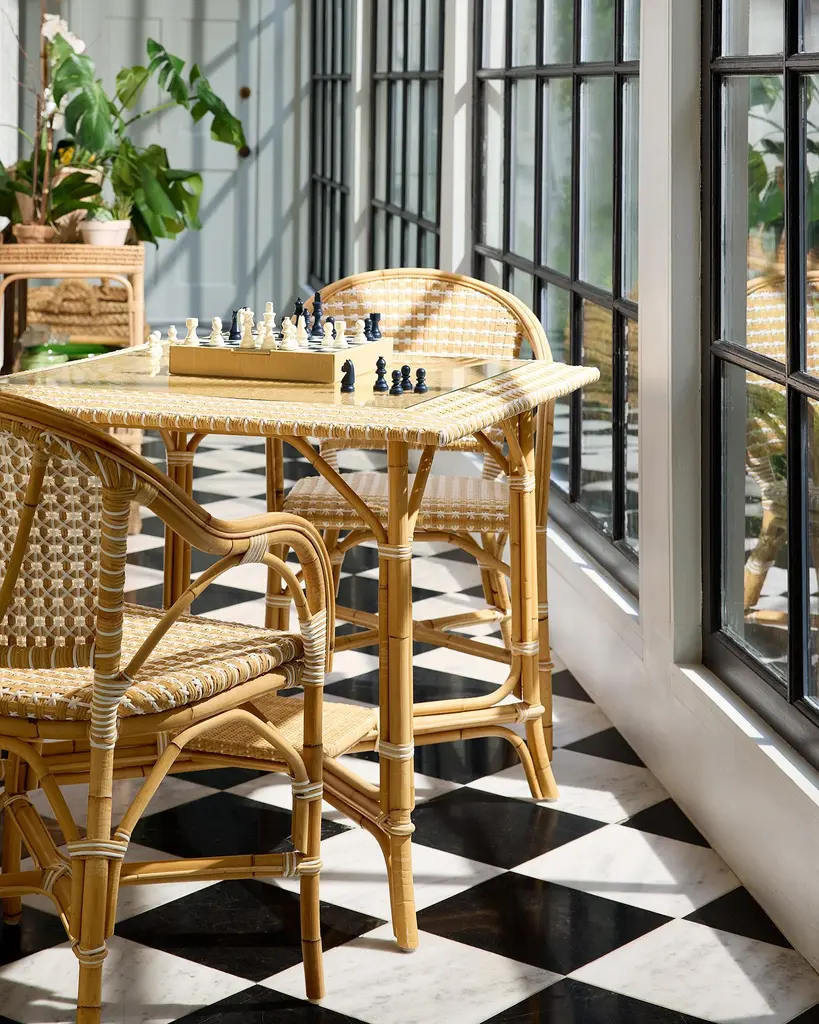 A stellar weave. Curves and edges. Au naturel. In French tradition peel and pole of rattan vine, combine. Every frame is bent and shaped by hand. Each bears marks of distinction — from harvest, an artisan touch, and nature's material maturing in time.