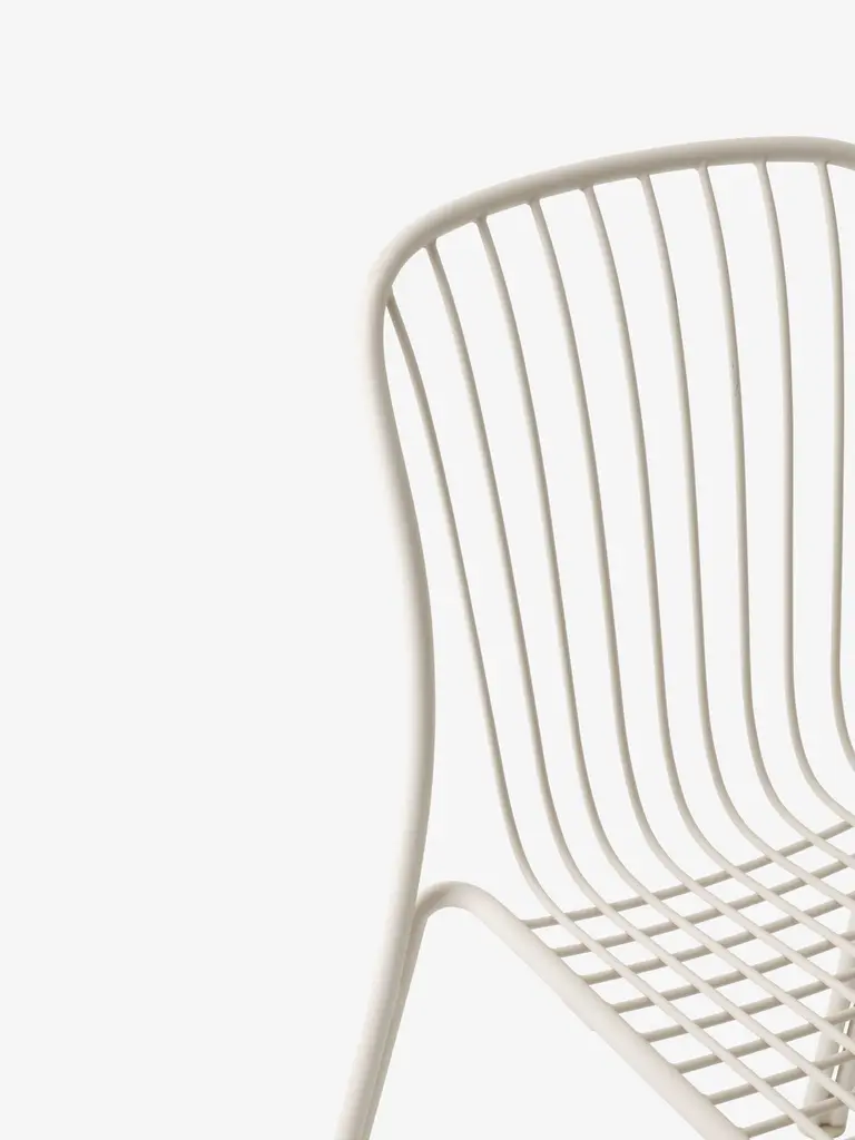 The Thorvald Collection celebrates outdoor living with sculpted silhouettes and an interplay of light and shadow. It’s a modern take on the lyrical lines of Denmark’s most esteemed neoclassical artist, Bertel Thorvaldsen and the mesmerising motifs of his eponymous museum. The steel frame and grid seating of the stackable side chair sets the scene for an elegant, versatile series. Inspired by Copenhagen’s vibrant atmosphere, it’s ideal for any city in the world, and your invitation to pause, enjoy a chat, a drink or a memorable the moment under the open sky.Thorvald SC94 Side ChairDimensionsW: 53.7cm / 21in, D: 59.4cm / 23in, H: 83.8cm / 33inSeating H: 45.9 cm / 18inWeight7 kgThorvald SC96 Café Table roundDimensionsØ: 70cm/ 28in, H: 72cm / 28inWeight7.8 kgProduct MaterialsPowder coated steel.This product has not been treated with any biocides.Production ProcessThe frame is bent – the back rest is die formed due to the curve. The wires are also bent and the pieces are then welded, polished, galvanised then powder coated.DesignerSpace CopenhagenEstablished in 2005 by Signe Bindslev Henriksen and Peter Bundgaard Rützou, Space Copenhagen is a design studio working across multiple disciplines from furniture, lighting and refined objects, to art installations, art direction and interior design for private homes, hotels and restaurants all over the world.The ambition is to forge new paths by balancing opposites: classic and modern, industrial and organic, sculptural and minimal, light and shade.The studio’s intuitive approach embodies designs that are distinctively shaped by the given circumstances, functional needs, and a fundamental interest in human behavior. It is a sense of and belief in slow aesthetic that centers quality and longevity.