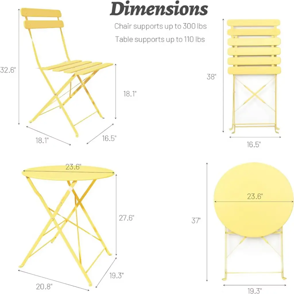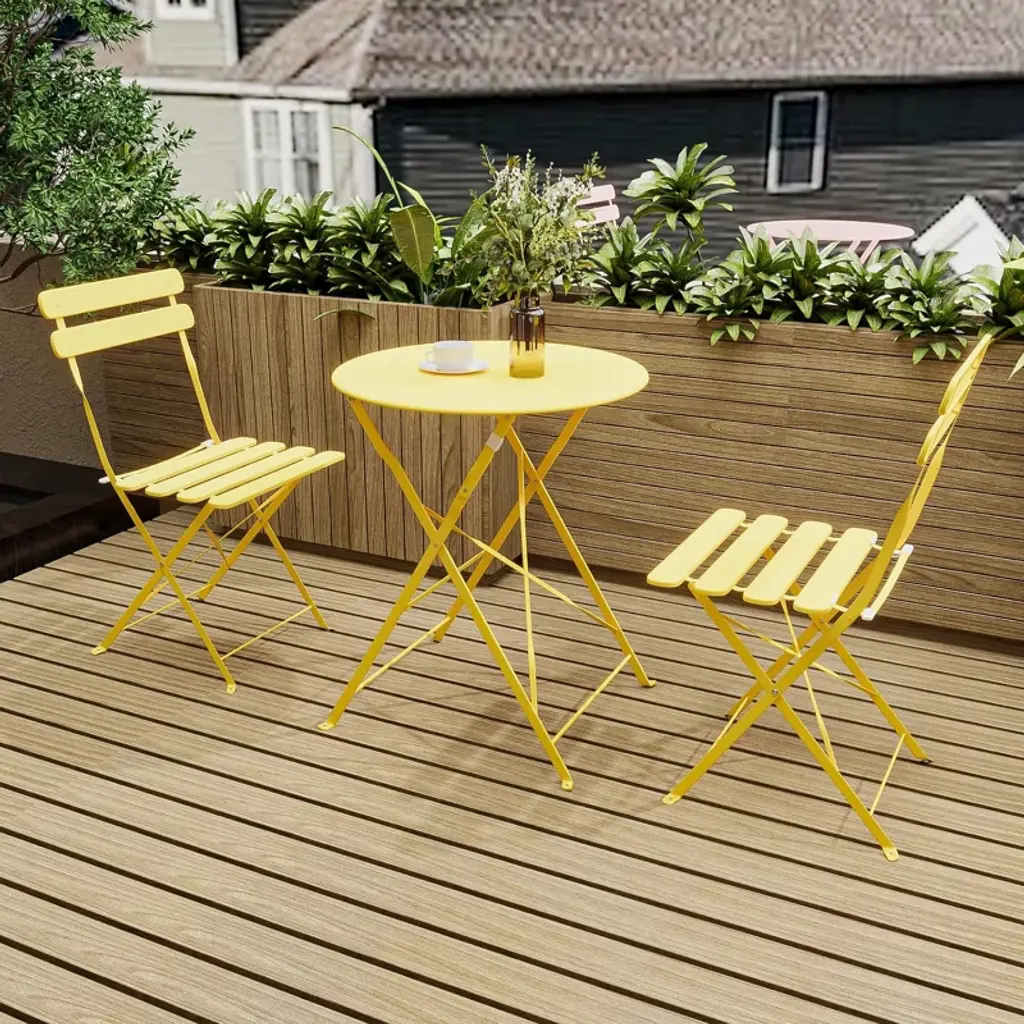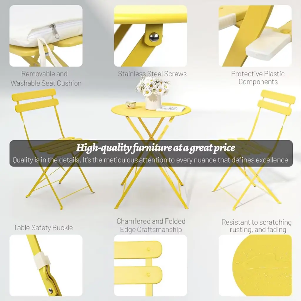 Sevobal 3-piece Set Folding Bistro Table And Chairs Weather Resistant Conversation For Bistro Balcony Porch Yard Garden Indoor, Yellow, 38.3"*24"*6.7"