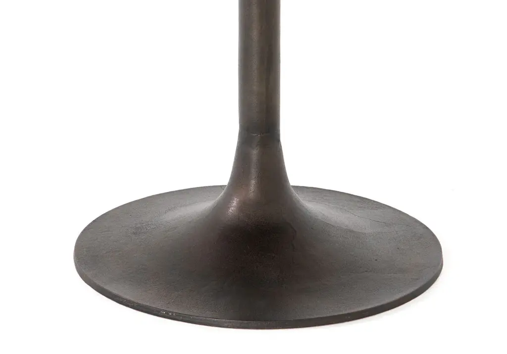 A classic silhouette, the Simone is a chic addition. Its antique rust finish accentuates its textural cast-aluminum form, for a dimensional, natural look. Easily styling indoors or outdoors, this bistro table pairs well with side chairs.