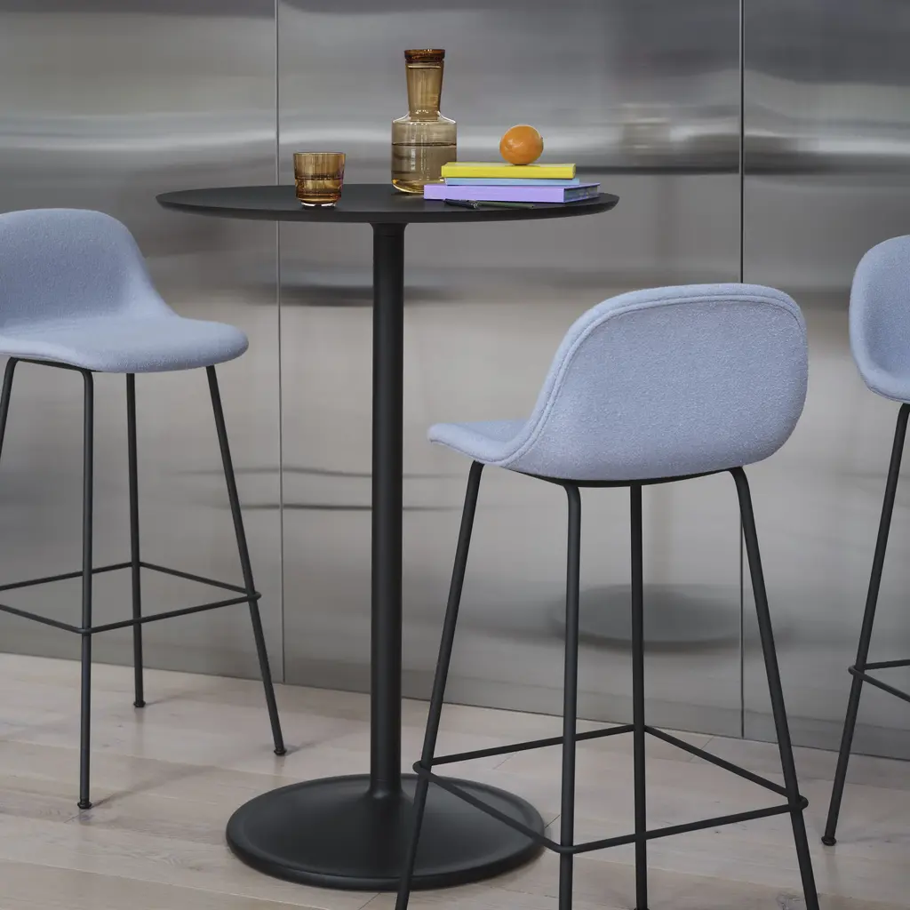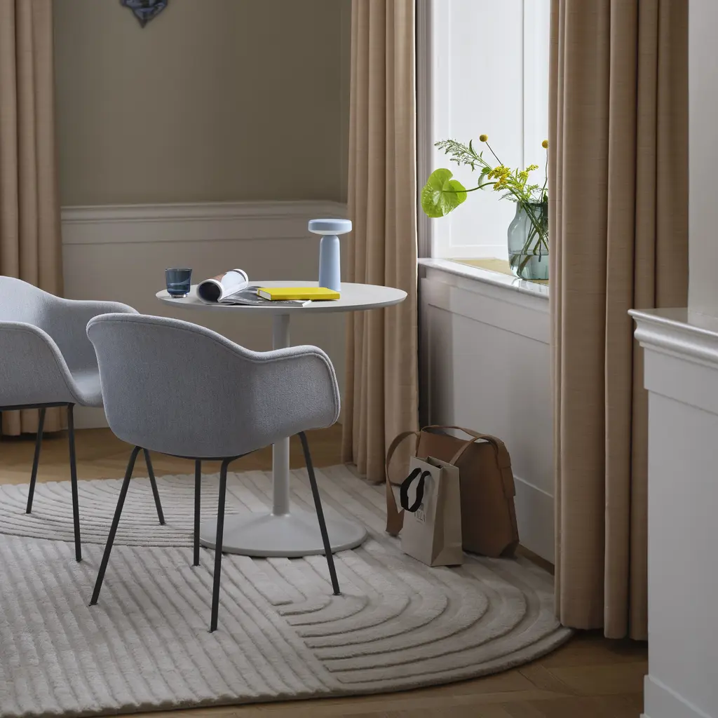 The Soft Café Table showcases gently rounded edges and is thoughtfully designed with features like a discreet groove under the tabletop for easy movement. The sturdy base, crafted from recycled, powder-coated aluminum, ensures lasting durability and stability, while the tabletop is available in various finishes. This table is a flexible choice for both indoor and al fresco dining settings. Available in 3 heights.