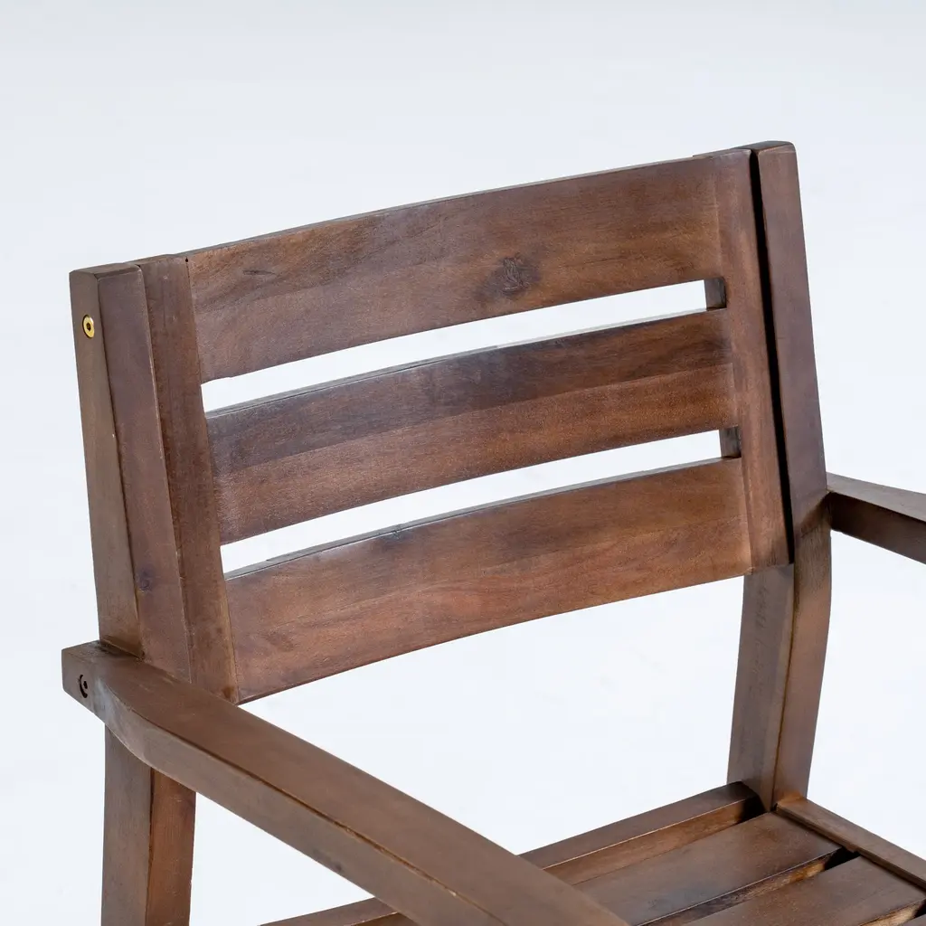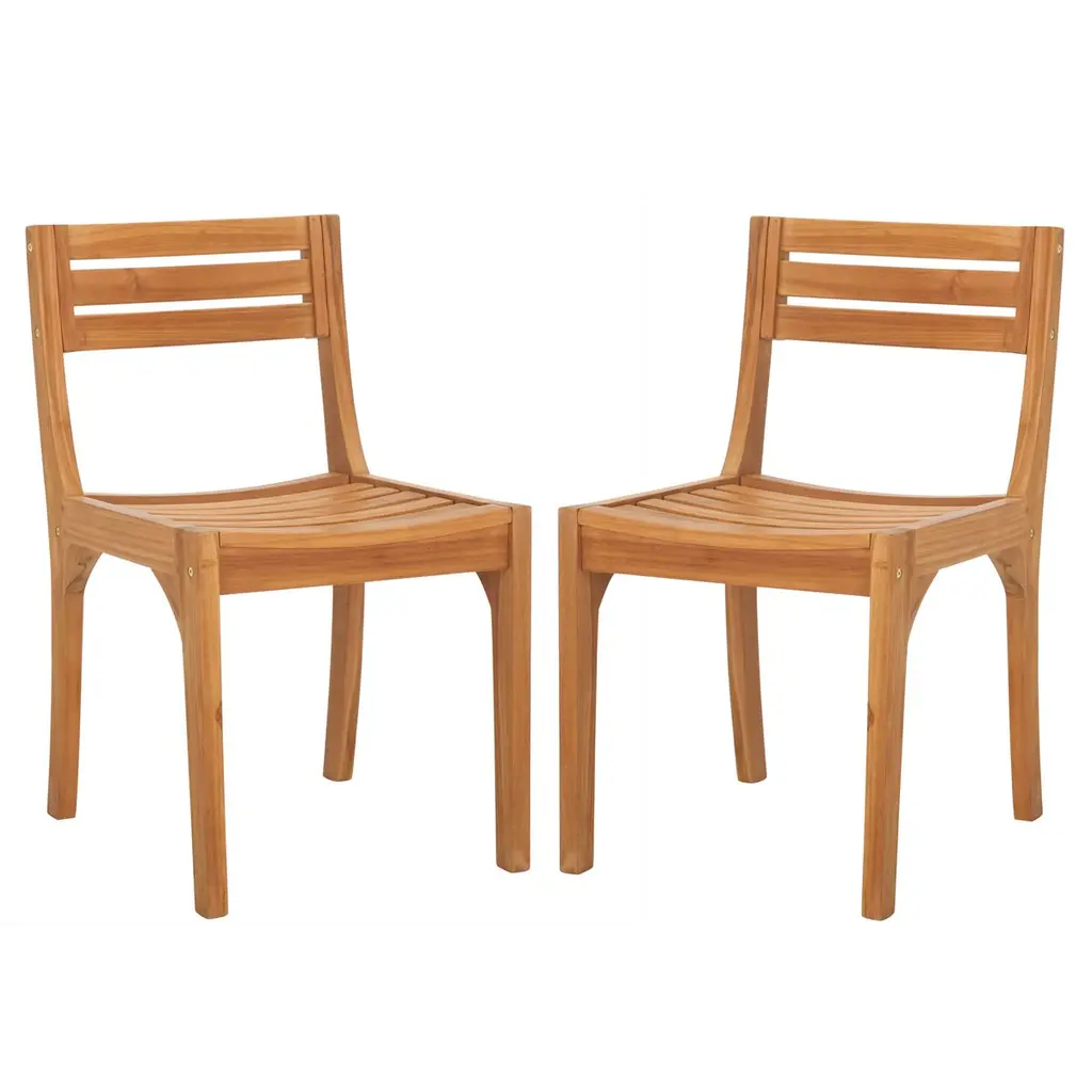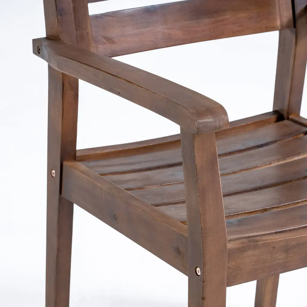 Quality Construction: Made from durable imported acacia wood, these dining chairs feature a simple yet stylish design, complete with slatted backs and seats for a modern touch.Practical Set: The set includes two chairs, offering versatility to enhance your outdoor dining area by pairing them with your preferred bistro table or existing furniture.Subtle Elegance: Finished in a tasteful gray hue, these chairs effortlessly blend into any outdoor setting, adding a touch of sophistication.Hand-Crafted Touch: Each chair is crafted with attention to detail, showcasing hand-crafted elements that highlight their quality construction.