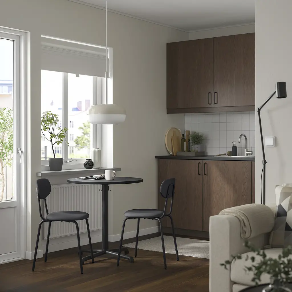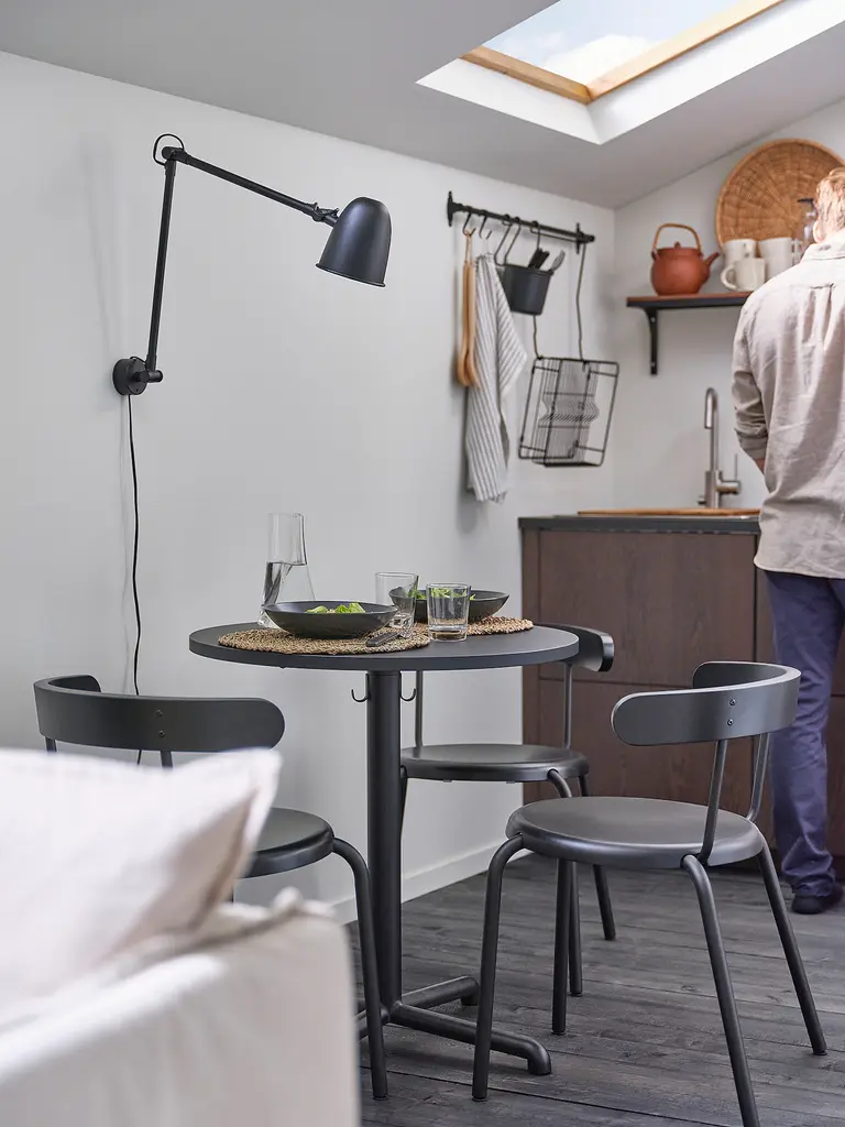 STENSELE Table - anthracite/anthracite 27 3/8 ". You can hang essentials like your bag or jacket within convenient reach on the two hooks underneath the table top. Sturdy yet lightweight and easy to move thanks to the hollow steel leg and four-legged aluminium base. Also available as bar table