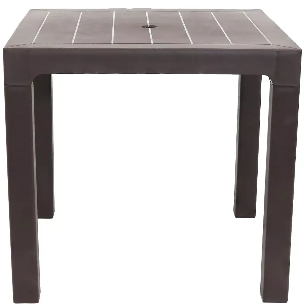 Enjoy good food and even better conversation with friends and family while gathered around this durable, square, dining patio table. Durably constructed of polypropylene, this table replicates the beautiful texture of wood without the extra maintenance required with real wood. This table is engineered to last for years to come, strong enough to withstand the elements outdoors. It also makes a great addition to indoor spaces too, such as a covered porch or a sunroom. Even use as extra dining space during events and parties. Add your choice of dining chairs to create a one-of-a-kind dining set that fits your style and space (please note, chairs are not included with this table and must be purchased separately). This table measures 31.25 inches wide and 29.25 inches tall, so it easily fits on the patio, deck, front porch, or yard.• COMPACT SIZE FOR PATIO: The table measures 31.25" square x 29.25" H and weighs 21.8 lbs. It has a 110 lb weight capacity and a 0.25" thick tabletop. The 1.5-inch diameter hole in center is designed to accommodate a patio umbrella for extra shade while relaxing outdoors (please note, umbrella is not included with this table and must be purchased separately); Table also includes a cap to cover up the center hole if an umbrella will not be used with the table• STURDY CONSTRUCTION: Table is made of strong and durable polypropylene; Material is easy to clean and maintain; Also designed to withstand the elements; Material replicates the attractive texture of natural wood• EASY TO ASSEMBLE: Simple, easy-snap, tool-free assembly allows you to put this table together quickly and enjoy it right away. You'll be entertaining guests and serving delicious snacks and drinks on it in no time at all.• INCLUDES 1 TABLE: Table is versatile and can be used both indoors and outdoors; Easily create a custom dining set by adding complementing chairs with this table (please note, chairs are not included with the table and must be purchased separately); Provides comfortable seating for up to 4 people• WORRY-FREE PURCHASING: Sunnydaze Decor backs its products with a 1-year manufacturer's warranty.