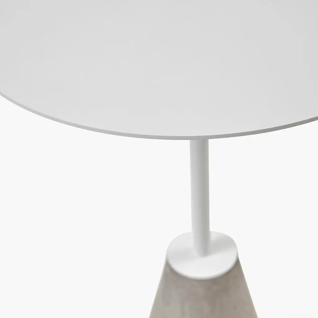 "Um" Round Bistro Table In White Painted Steel With Concrete Base