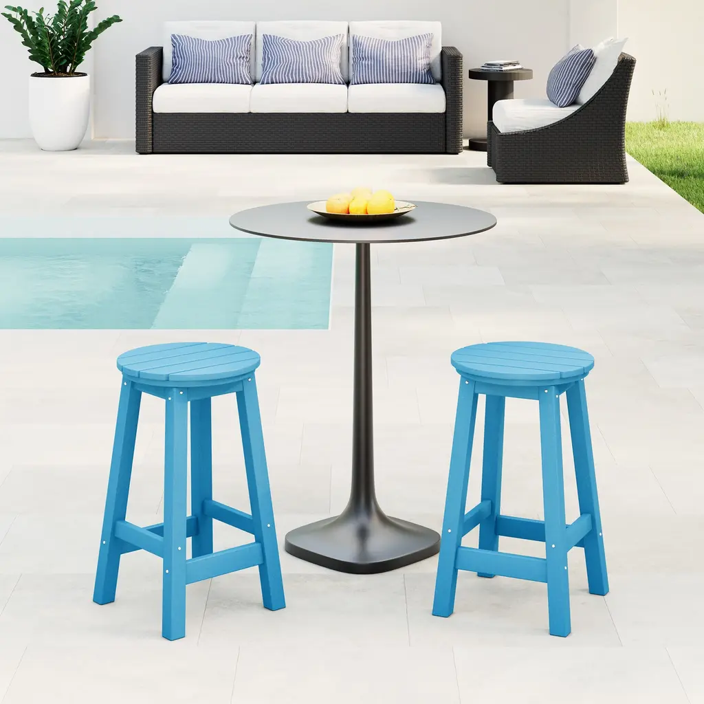 Westintrends Malibu 29" All Weather Hdpe Outdoor Patio Round Backless Bar Stool (Set Of 2), Pacific Blue
