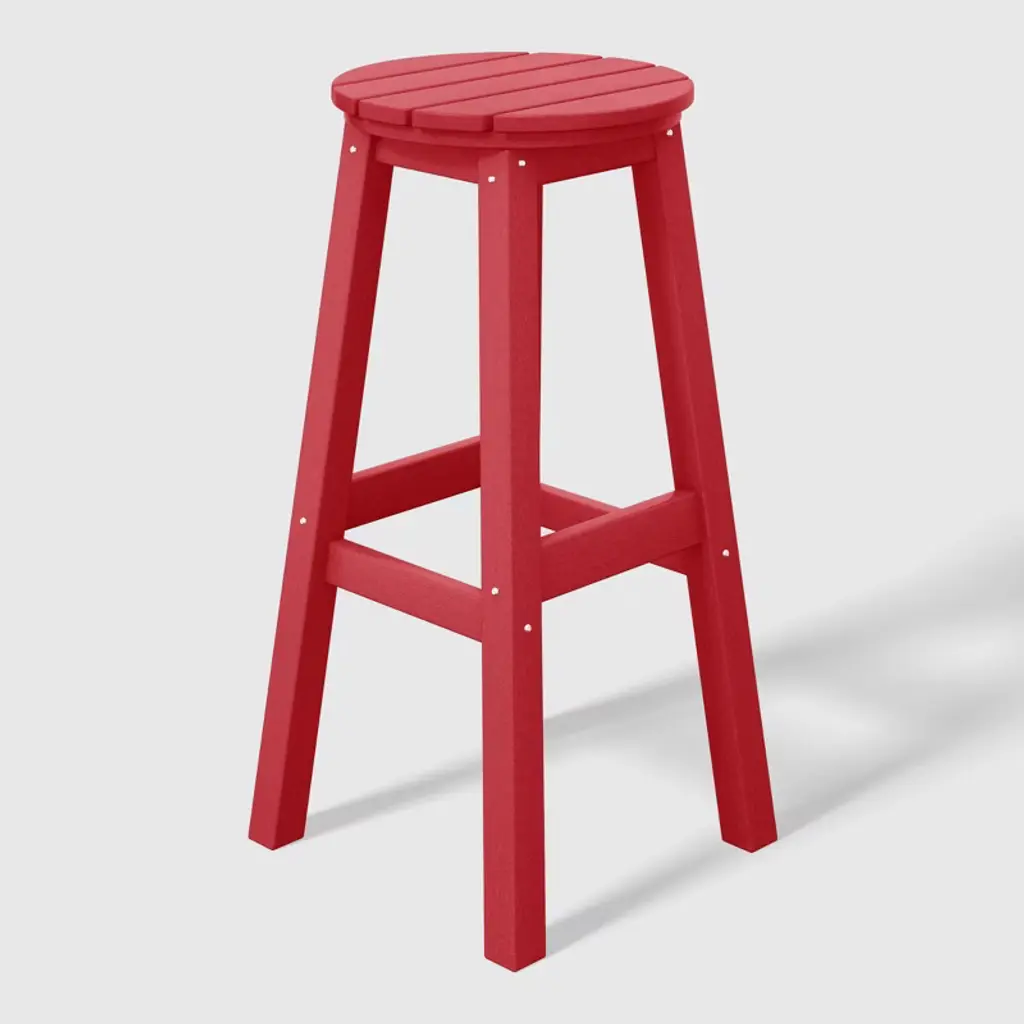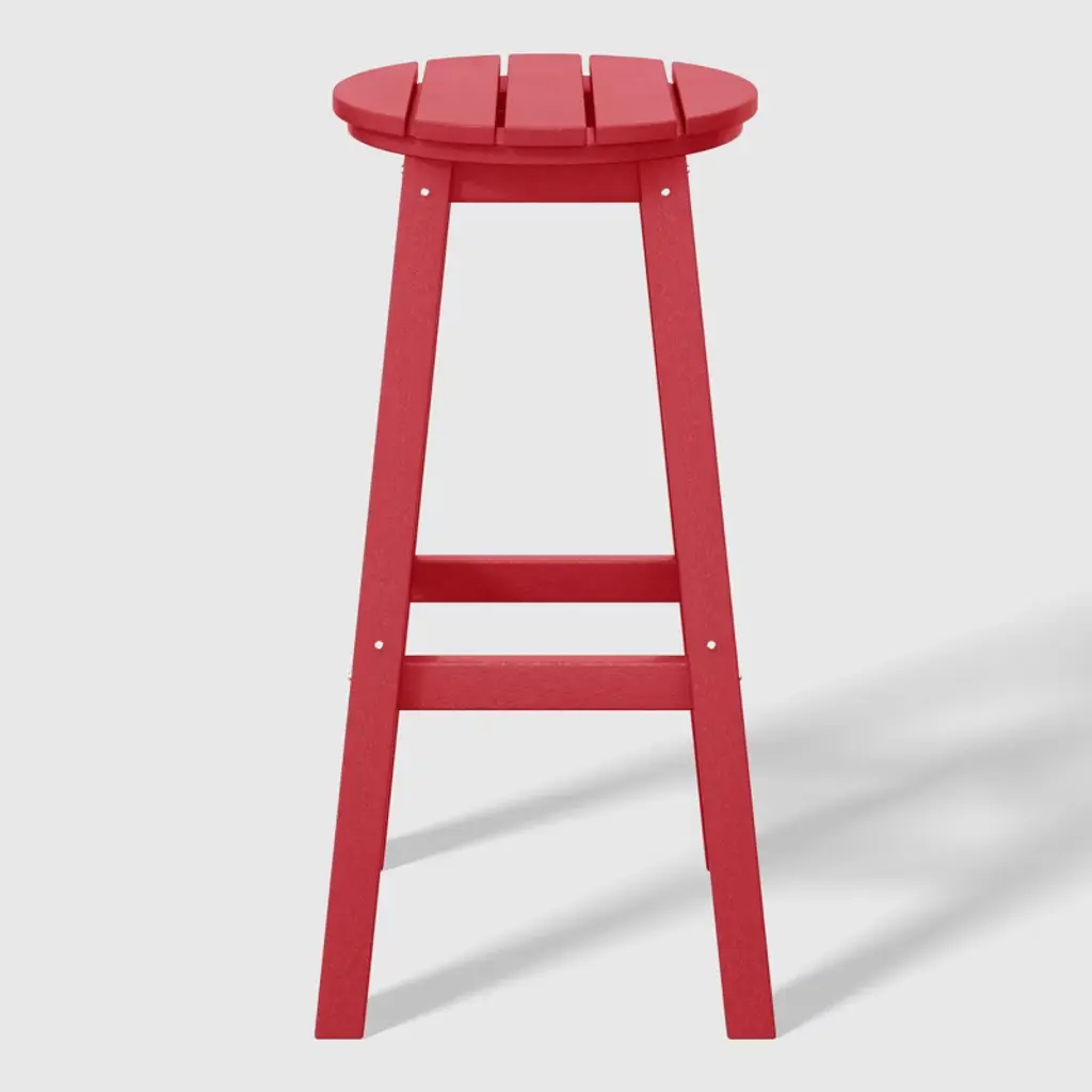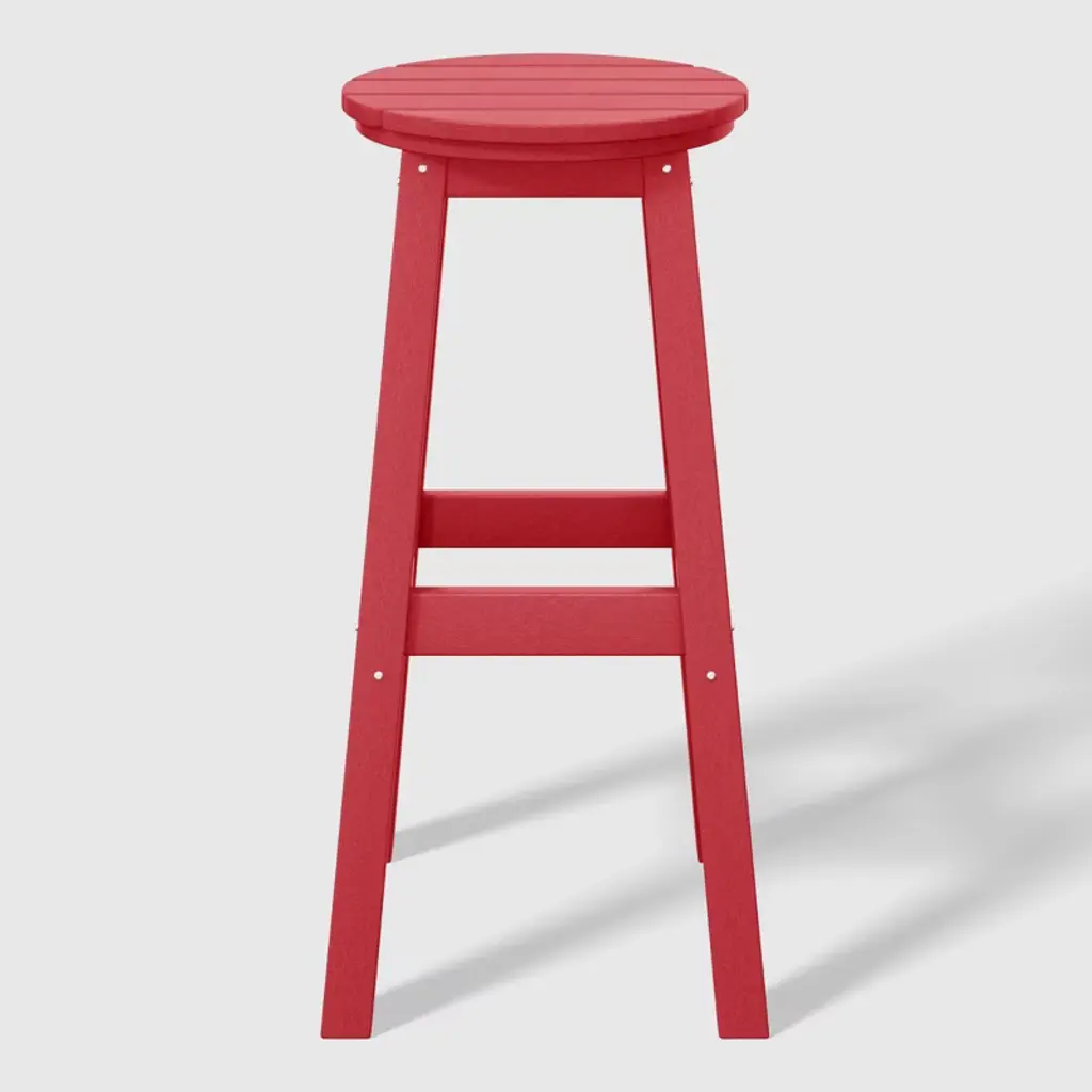 This set of two 29" backless bar stools presents a sophisticated addition to your outdoor patio, ideally suited for placement around your outdoor patio bar or bistro table. Crafted from durable and recycled HDPE material, its design is tailored for outdoor use, boasting UV and weather-resistant properties that safeguard the stool. Available in a palette of fade-resistant solid colors, it ensures the enduring vibrancy of its charming hue each season. The backless design makes for seamless storage underneath the table, offering both versatility and elegance. The classic yet modern aesthetic effortlessly harmonizes with your existing decor, while the A-frame design, supported by four sturdy square legs and foot bars, provides a well-balanced and comfortable seating experience.While we strive to accurately represent product colors, please be aware that actual colors may vary slightly due to individual screen settings and lighting conditions. FeaturesSet of two (2) 29" round bar stoolsConstructed from robust and environmentally friendly HDPE materialWeather resistant to protect against the harsh outdoor elementsFade and UV resistant to protect against the sunStackable for simple storageStainless steel hardware prevents rustLightweight constructionDetails:Product Type: Patio Bar & Counter StoolsWhat's Included: (2) Bar StoolBar StoolDimensions: 13.75" W x 13.75" D x 29.75" HWeight: 14.5 lbs.Seat Width: 13.75"Seat Depth: 13.75"Seat Height: 29.5"Weight Capacity: 330 lbs.