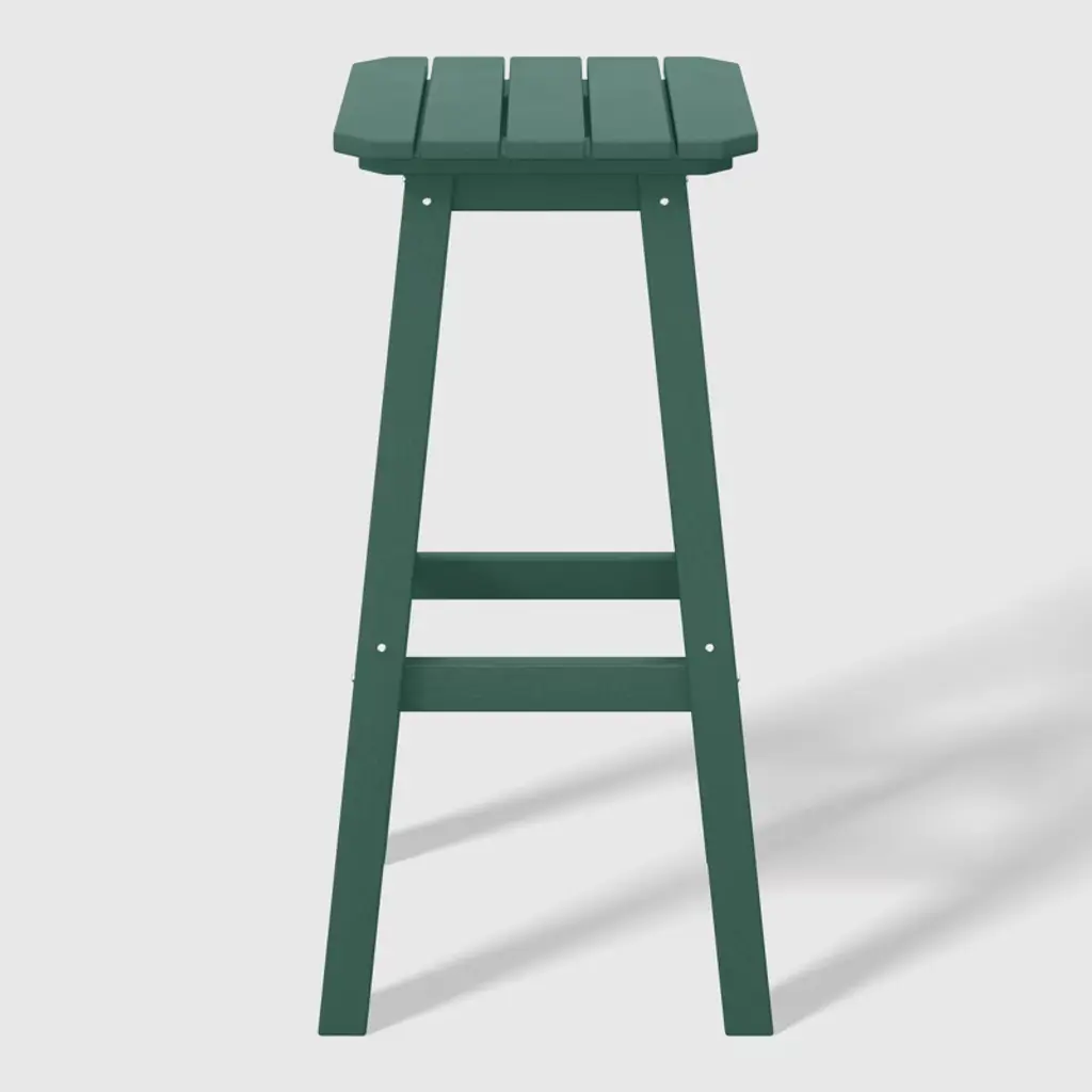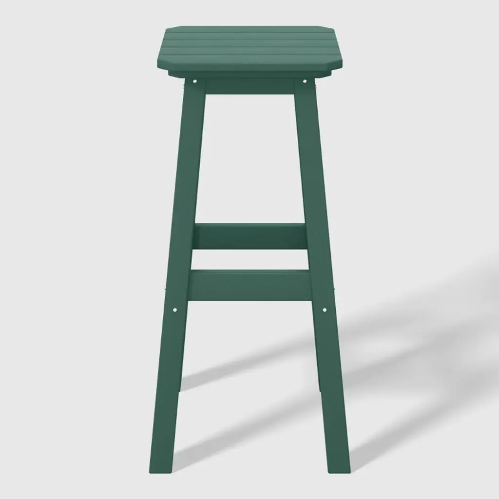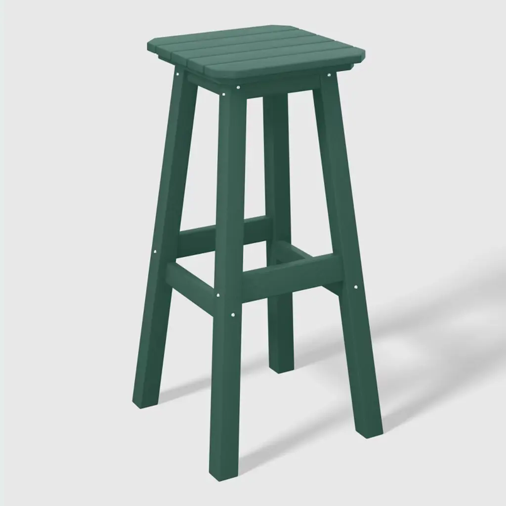 These 29" square-seat bar stools presents a sophisticated addition to your outdoor patio, ideally suited for placement around your outdoor patio bar or bistro table. Crafted from durable and recycled HDPE material, its design is tailored for outdoor use, boasting UV and weather-resistant properties that safeguard the stool. Available in a palette of fade-resistant solid colors, it ensures the enduring vibrancy of its charming hue each season. The backless design makes for seamless storage underneath the table, offering both versatility and elegance. The classic yet modern aesthetic effortlessly harmonizes with your existing decor, while the A-frame design, supported by four sturdy square legs and foot bars, provides a well-balanced and comfortable seating experience.While we strive to accurately represent product colors, please be aware that actual colors may vary slightly due to individual screen settings and lighting conditions. FeaturesSet of three (3) patio backless bar stoolsConstructed from robust and environmentally friendly HDPE materialWeather resistant to protect against the harsh outdoor elementsFade and UV resistant to protect against the sunA-frame construction adds stabilityStainless steel hardware prevents rustLightweight constructionDetails:Product Type: Patio Bar & Counter StoolsWhat's Included: (3) Bar StoolBar StoolDimensions: 13.5" W x 13.75" D x 29.5" HWeight: 14.5 lbs.Seat Width: 13.5"Seat Depth: 13.5"Seat Height: 29.5"Weight Capacity: 330 lbs.