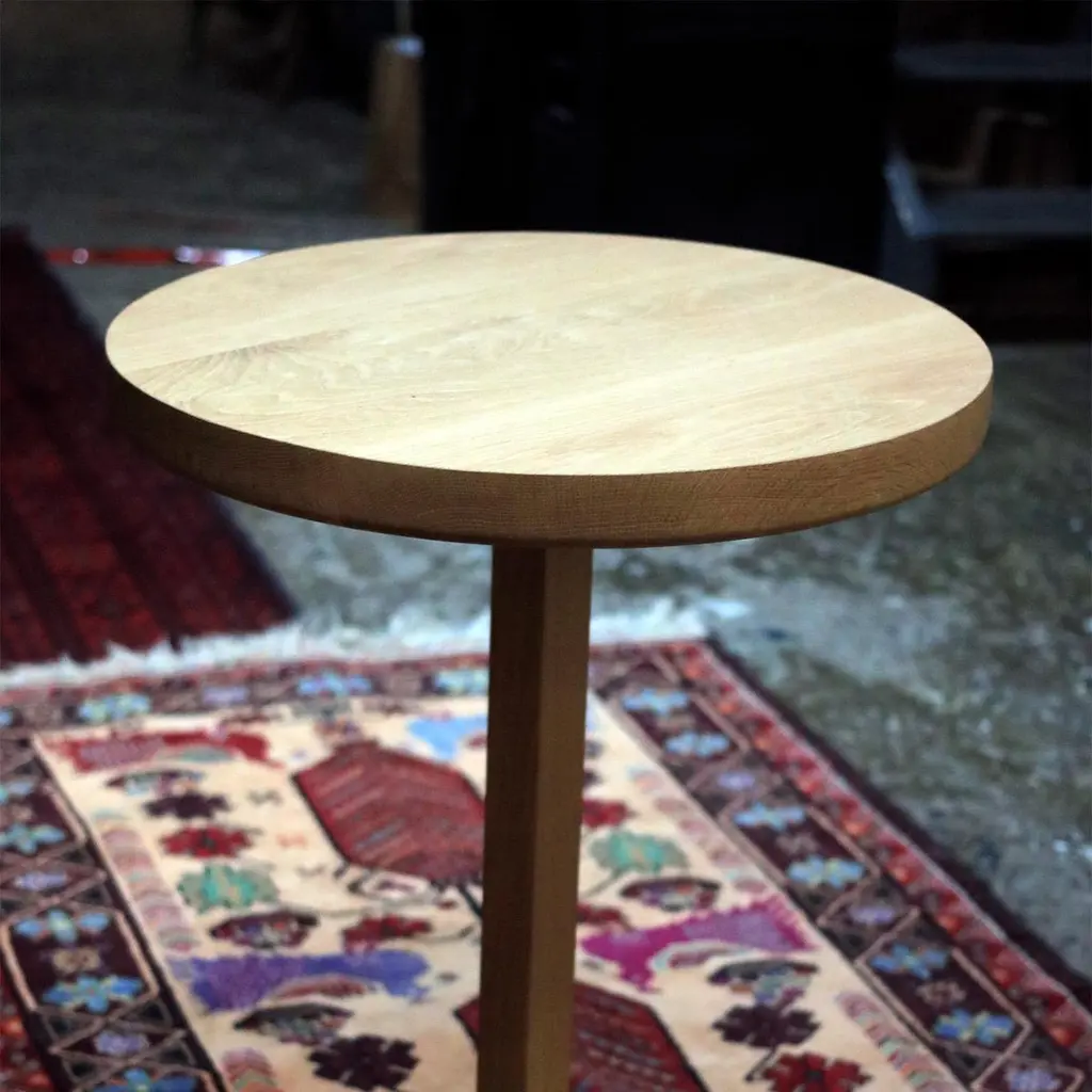 This table is a modern, elegant version of a classic round bistro table.It's suitable for restaurant or home use. The white oak option is durable, beautiful, and easy to maintain. Customers can select wood species, finish, and dimensions.
