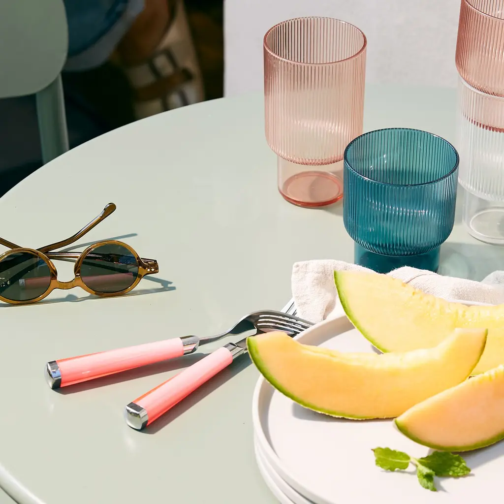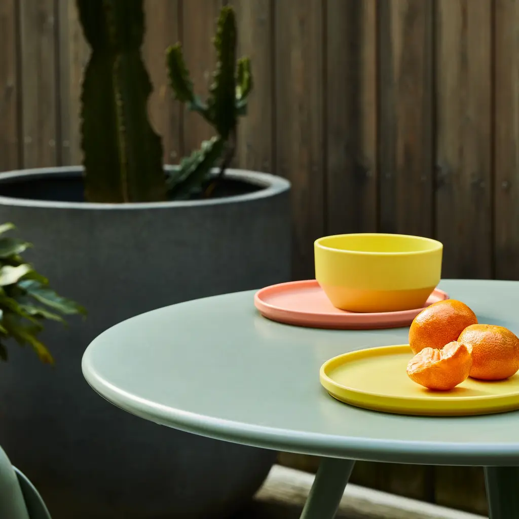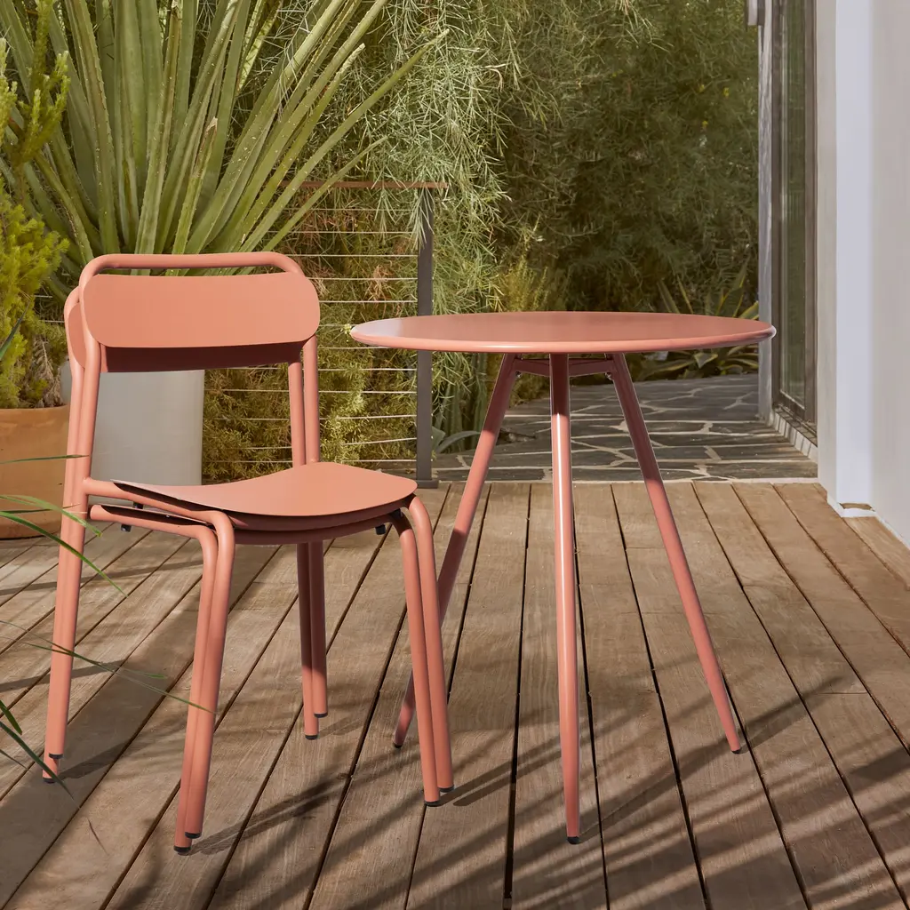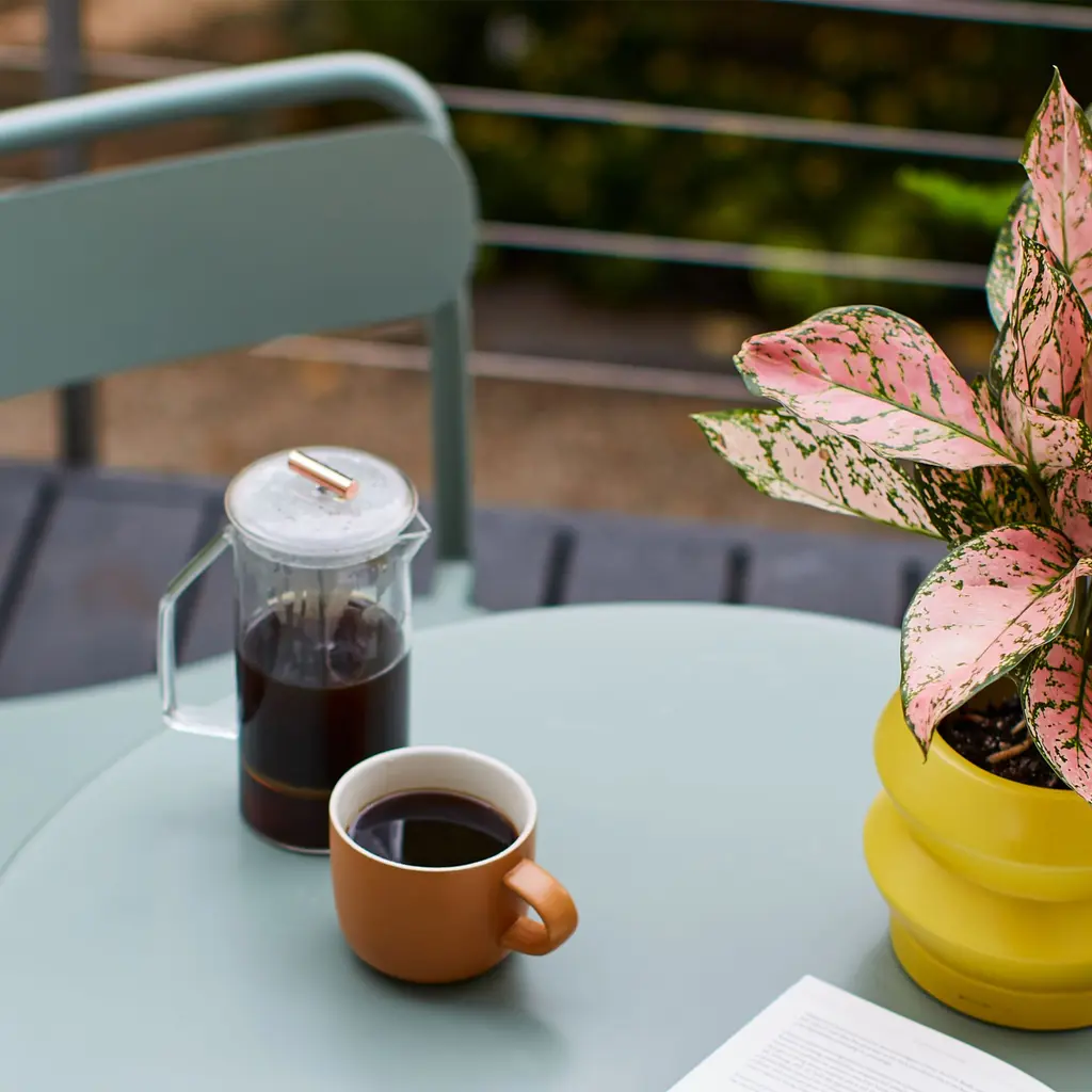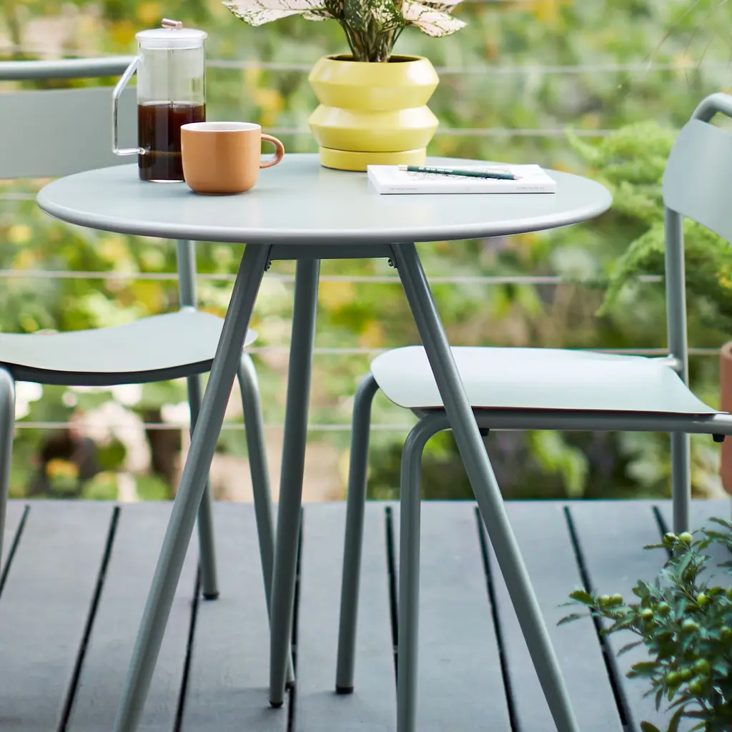 Its simple form makes a modern statement. Works equally well indoors as out. Just the right size for a balcony or patio.